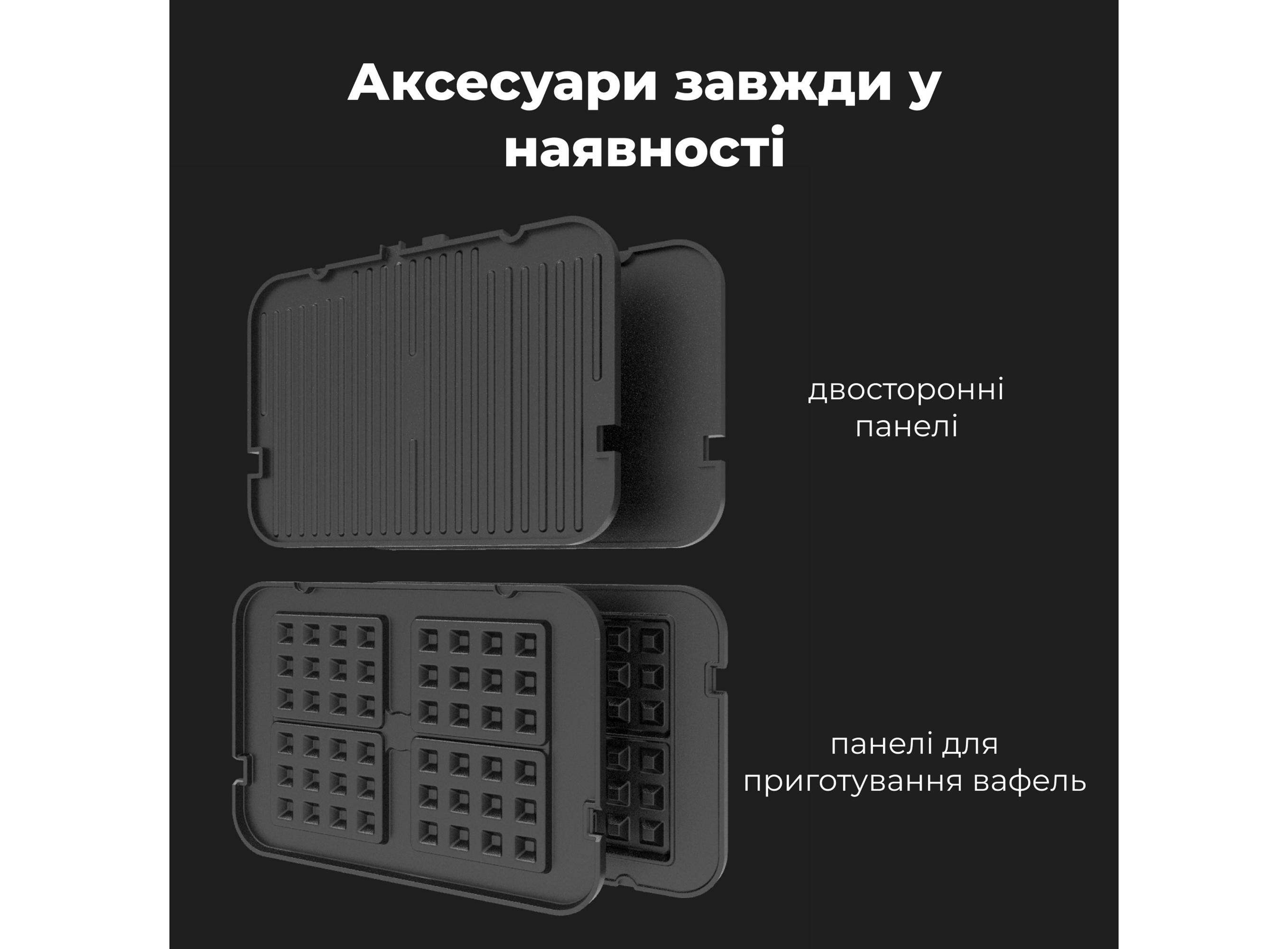 Гриль • Съемные двусторонние панели (2 шт.) • Пластиковый поддон для сбора жира • Краткое руководство • Гарантийный талон • Электронная книга рецептов • Эко упаковка
