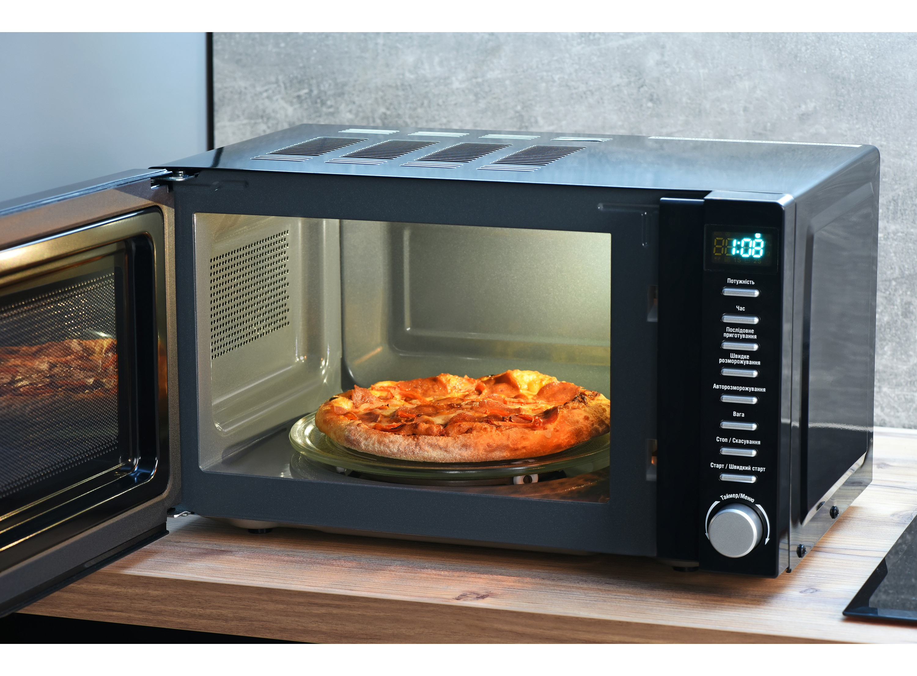 Зеркальная дверца • Программы приготовления: 6 • Дисплей (время) • Сигнал об окончании работы