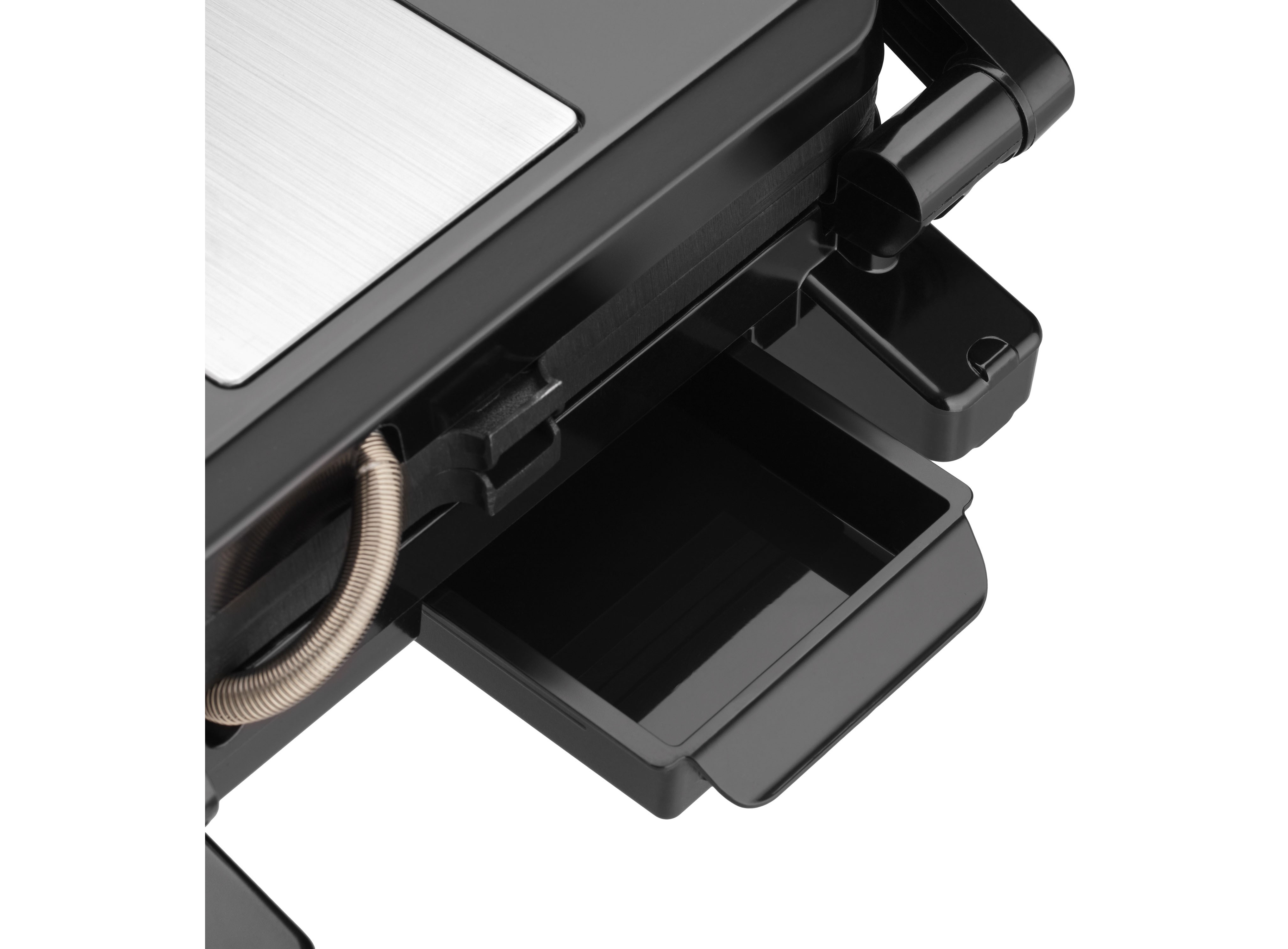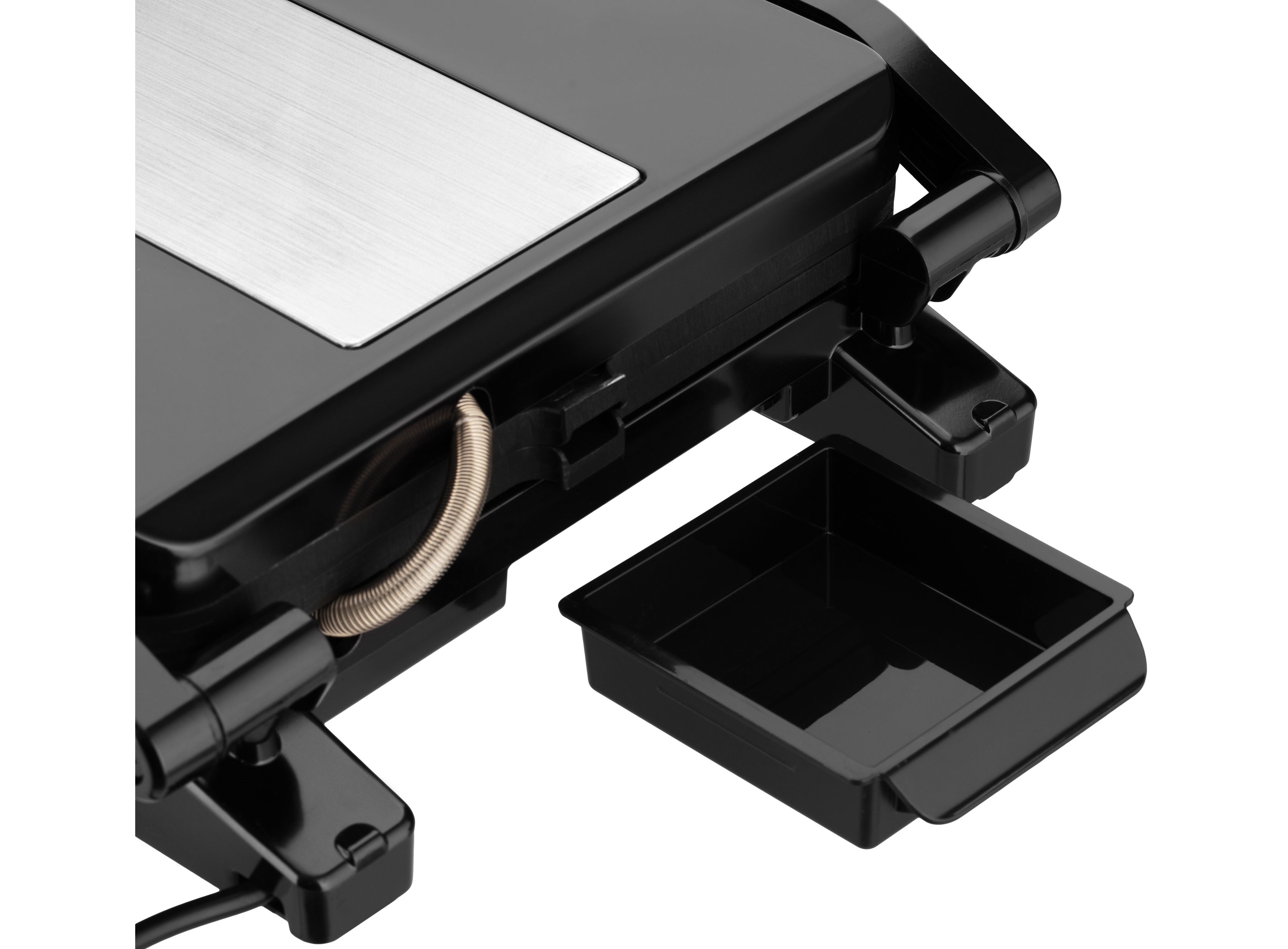 Тип контактный гриль • Тип установки настольный • Тип управления механический • Цвет черный+серебристый • Регулирование температуры • Возможность приготовления в открытом положении на 2-х пластинах одновременно • Можность приготовления • Съемный лоток для