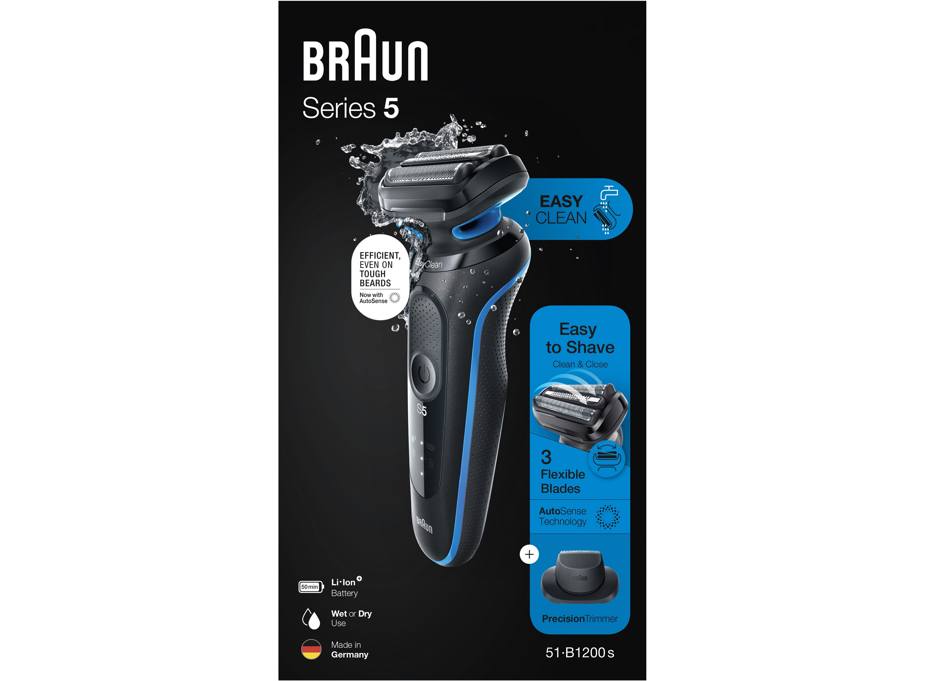 Электробритва Braun Series 5 51-B1200s с точным триммером, синяя (4210201432630)