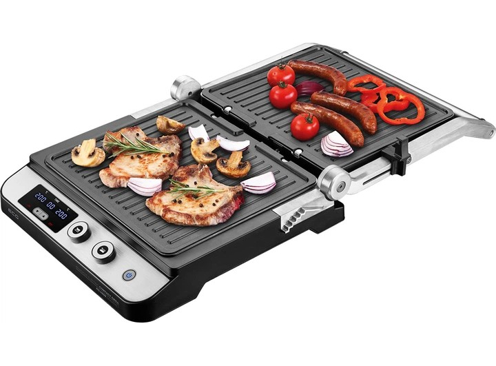 Контроль температуры • Индикатор питания • 3 рабочих режима гриля: гриль, барбекю, печь • Полное раскрытие гриля на 180° • Пластины с антипригарным покрытием