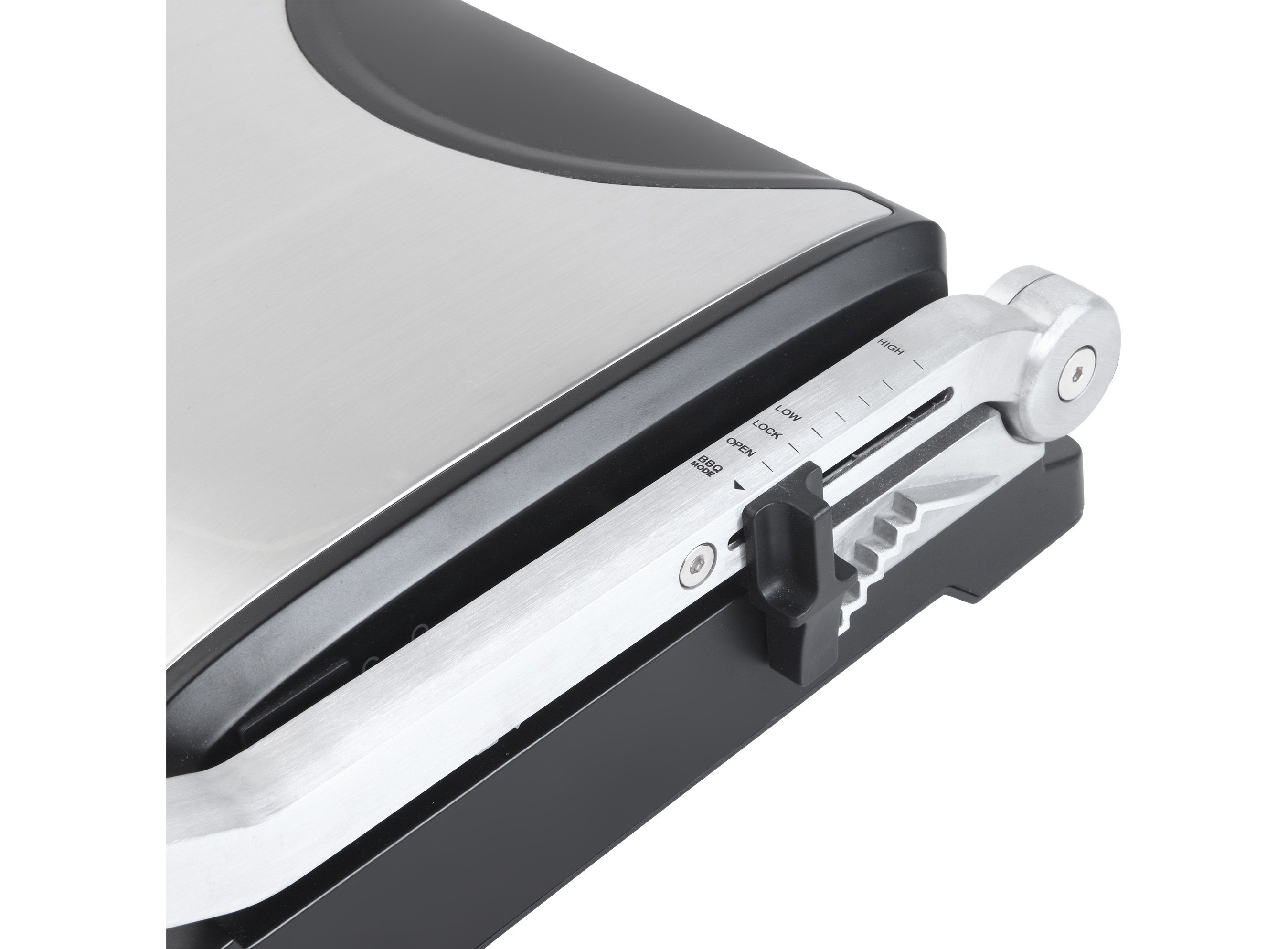 3 рабочих положения и высота верхней пластины • Антипригарные покрытия • Съемные решетки для гриля • Съемный поддон для сбора капель • Контроль температуры • Индикатор питания • Регулировка по высоте