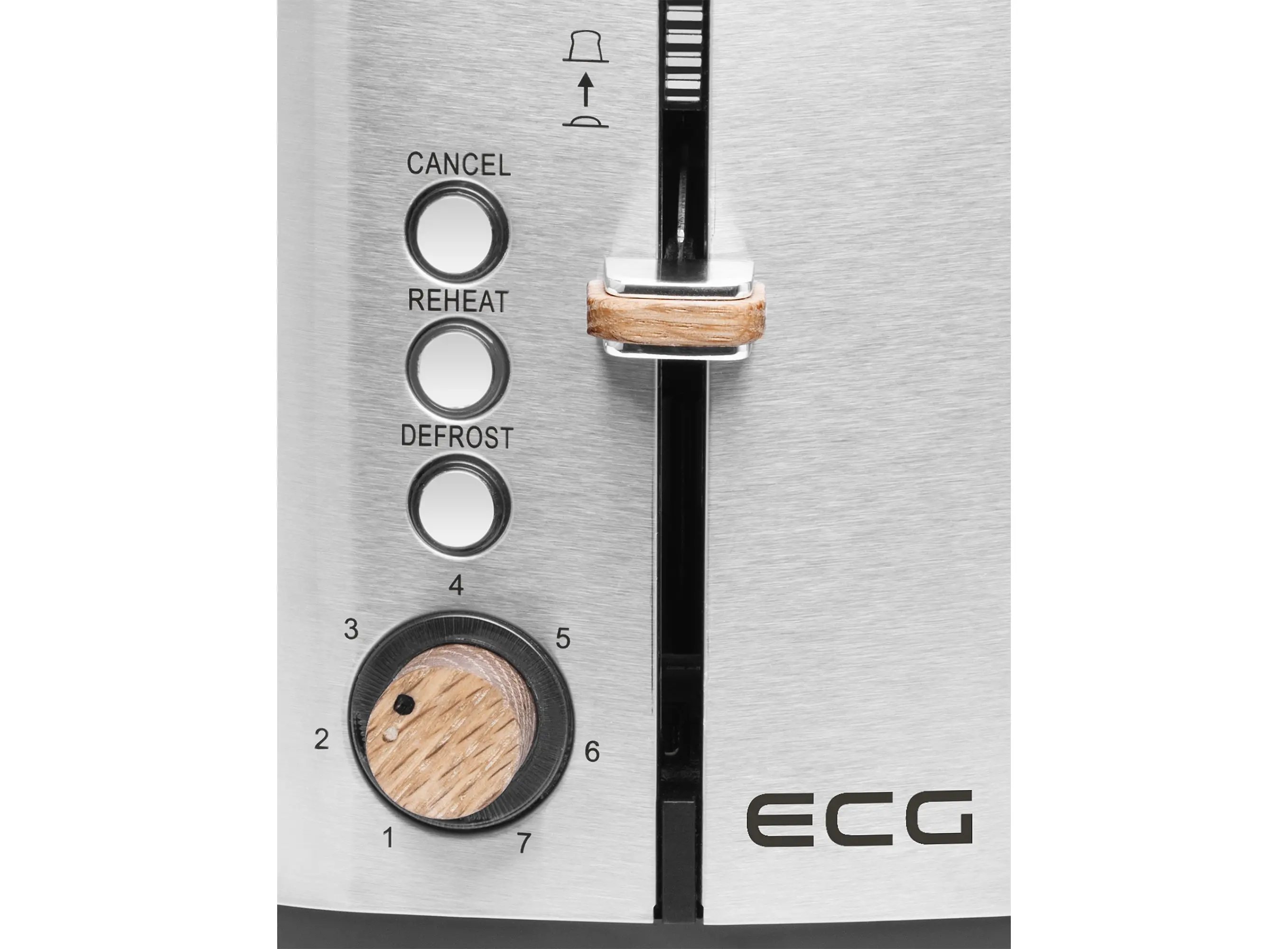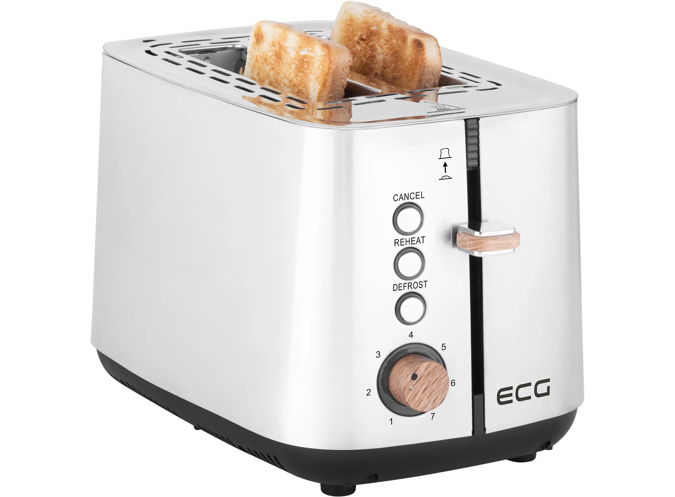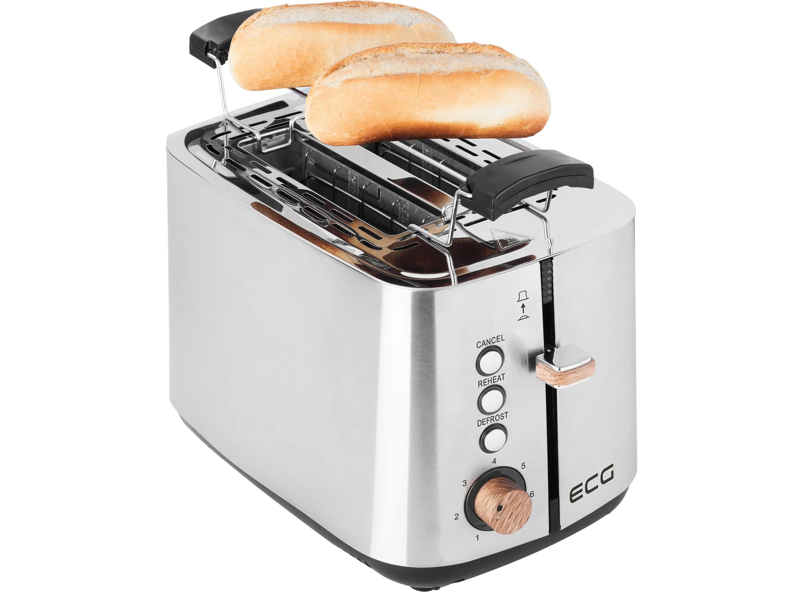 2 отделения для тостов. Оригинальный металлический дизайн с деревянными элементами. Отсек для сетевого шнура. Длина кабеля – 100 см.