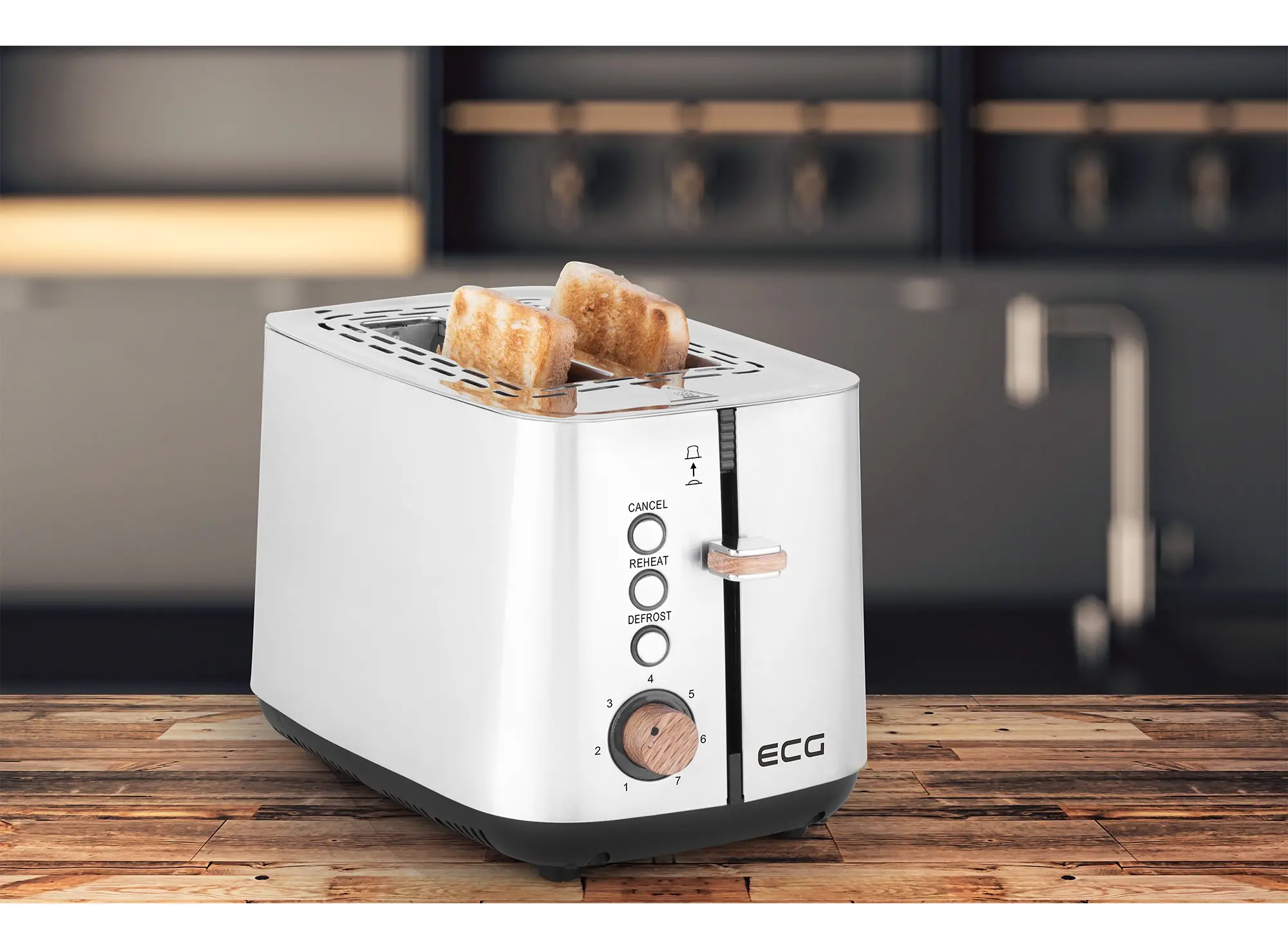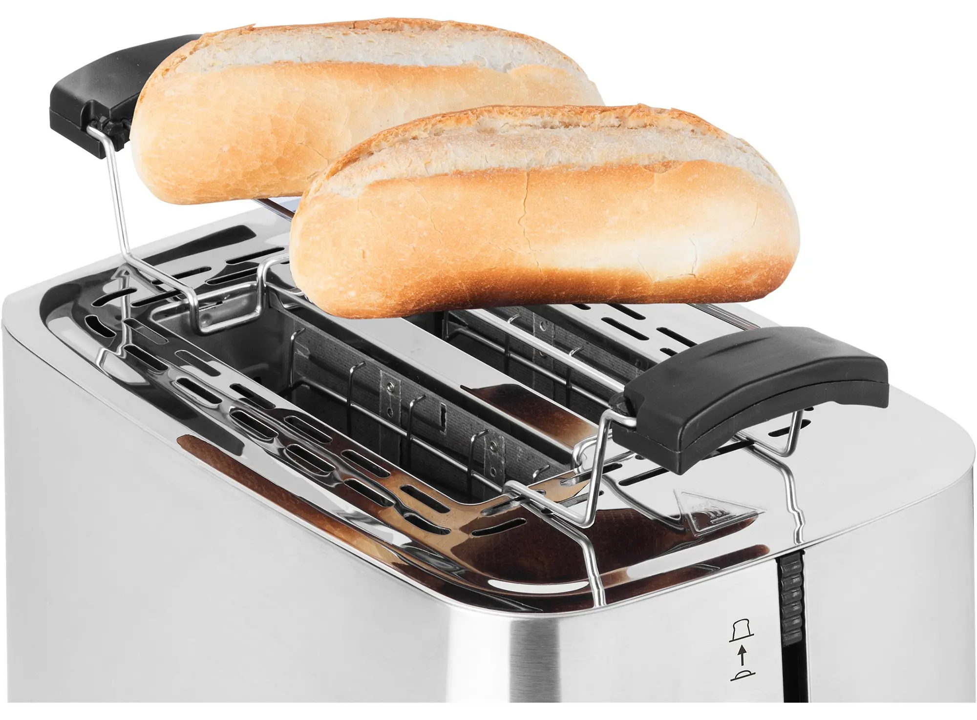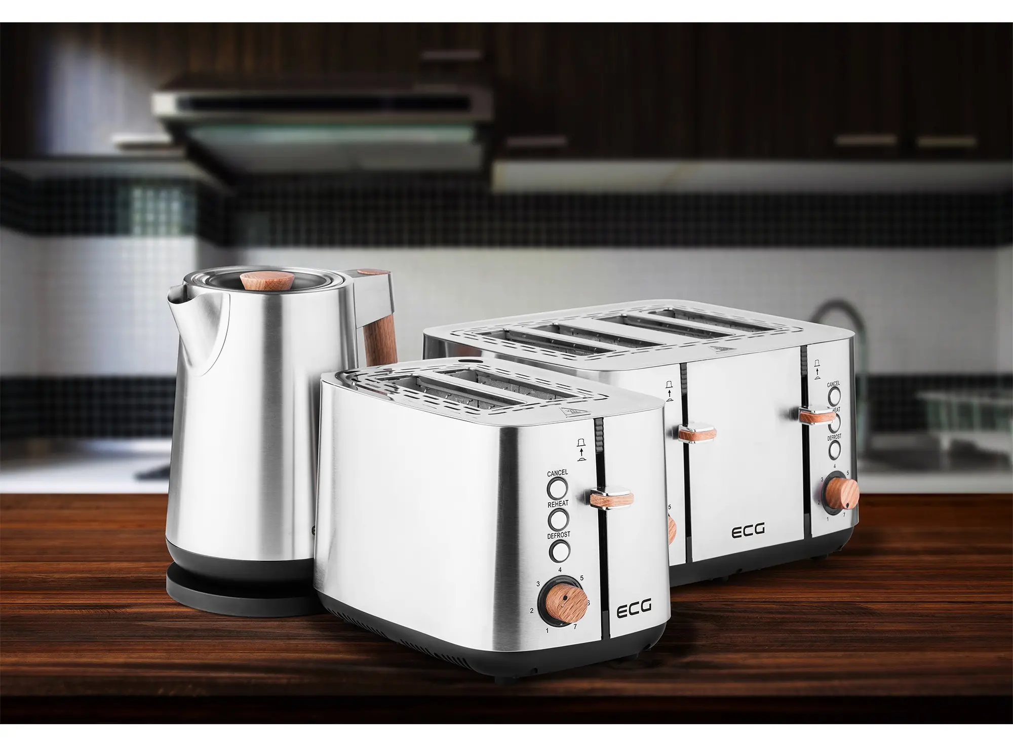 2 отделения для тостов. Оригинальный металлический дизайн с деревянными элементами. Отсек для сетевого шнура. Длина кабеля – 100 см.