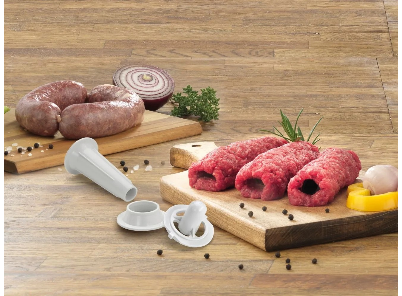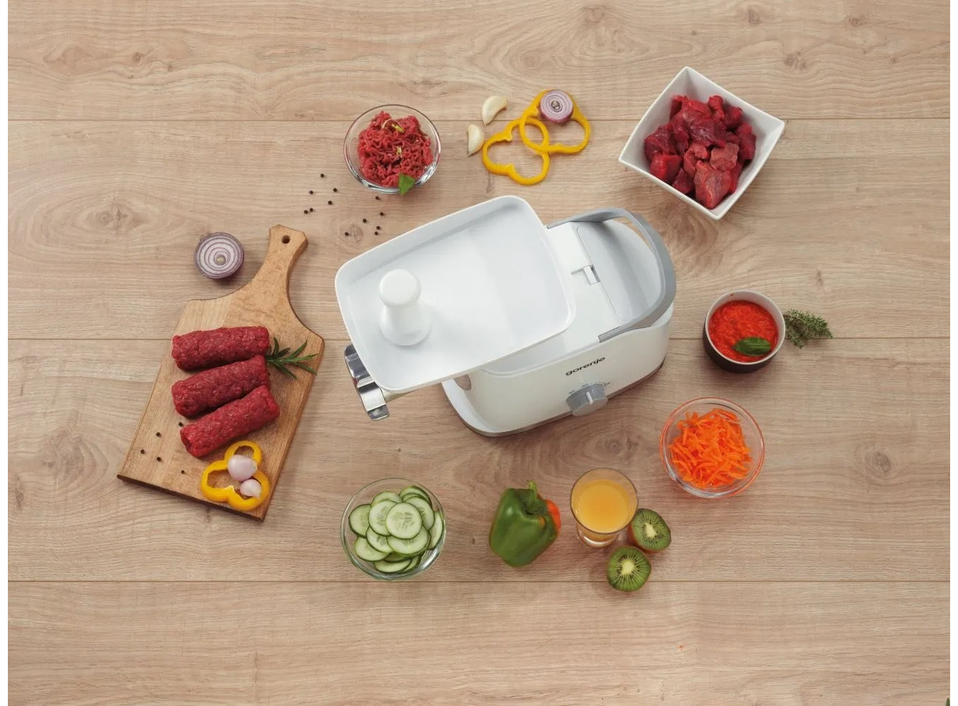 Защита от перегрева • Металлический механизм измельчения • Мгновенная остановка двигателя для вашей безопасности • Шнековый соковыжиматель • Диаметр дисков 54 мм • Диаметр отверстий диск 1 – 3 мм • Диаметр отверстий диск 2 – 8 мм • Соединительный кабель 1