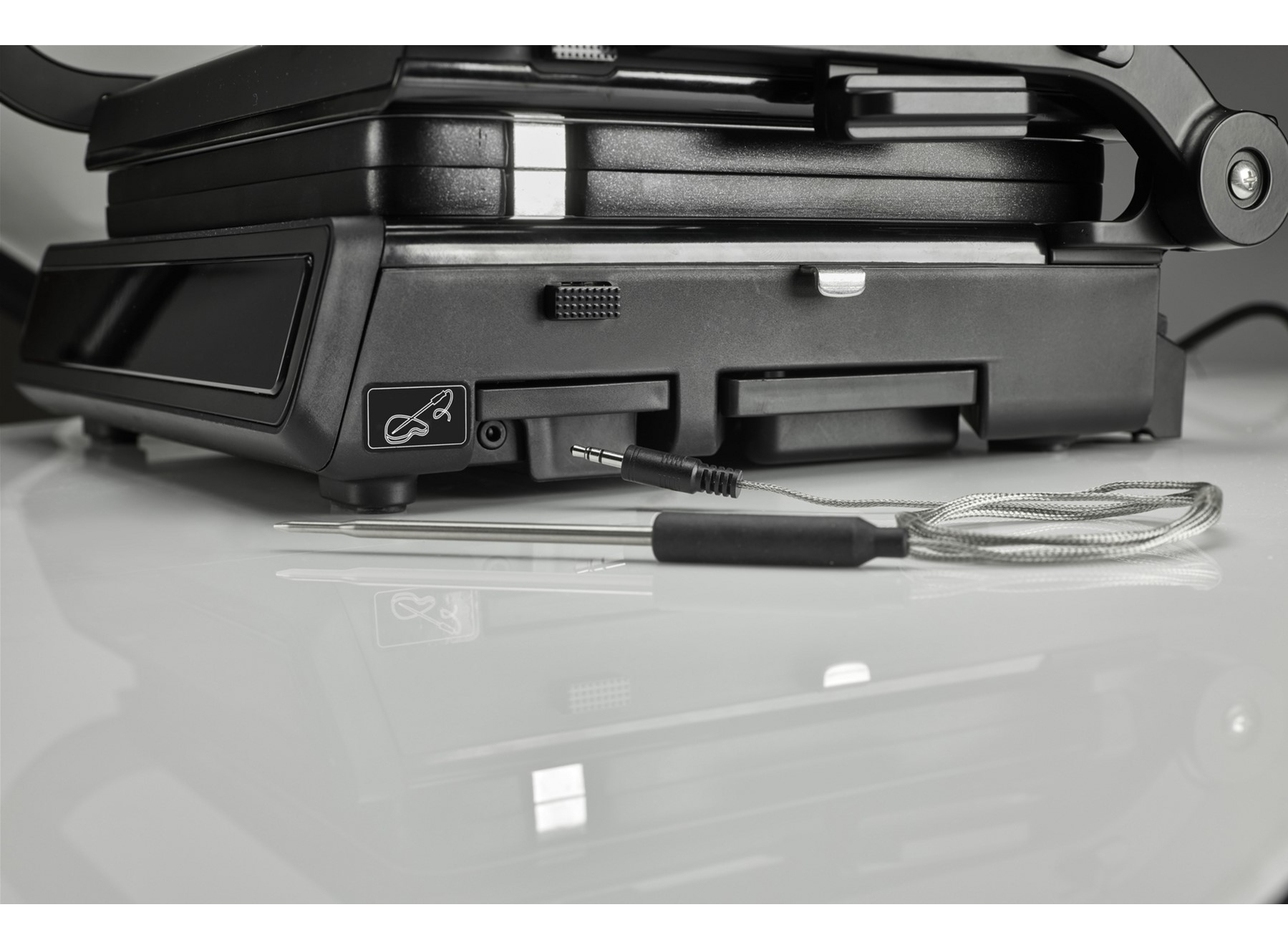 Гриль • Резиновые ножки • Желоб для капель жира/сока • Термощуп • Грилевые пластины - 2 шт. • Гарантийный талон • Инструкция