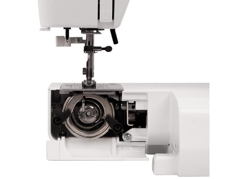 Выметывает петлю за 4 шага без поворота ткани • Автоматическая заправка верхней нити • Возможность шитья двойной иглой • Маркированная схема заправки нити • Быстрая смена прижимной лапки • Регулировка натяжения нитей • Боковой обрезчик нити • Система откл