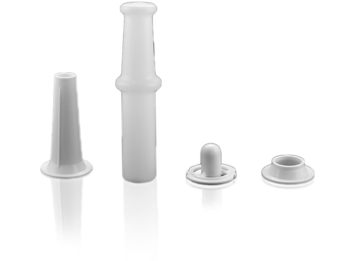 3 диска для помола (3 мм/5 мм/7 мм) • Насадка для колбас • Насадка для кебе • Соковыжималка для томатов • Толкатель • Металлический лоток
