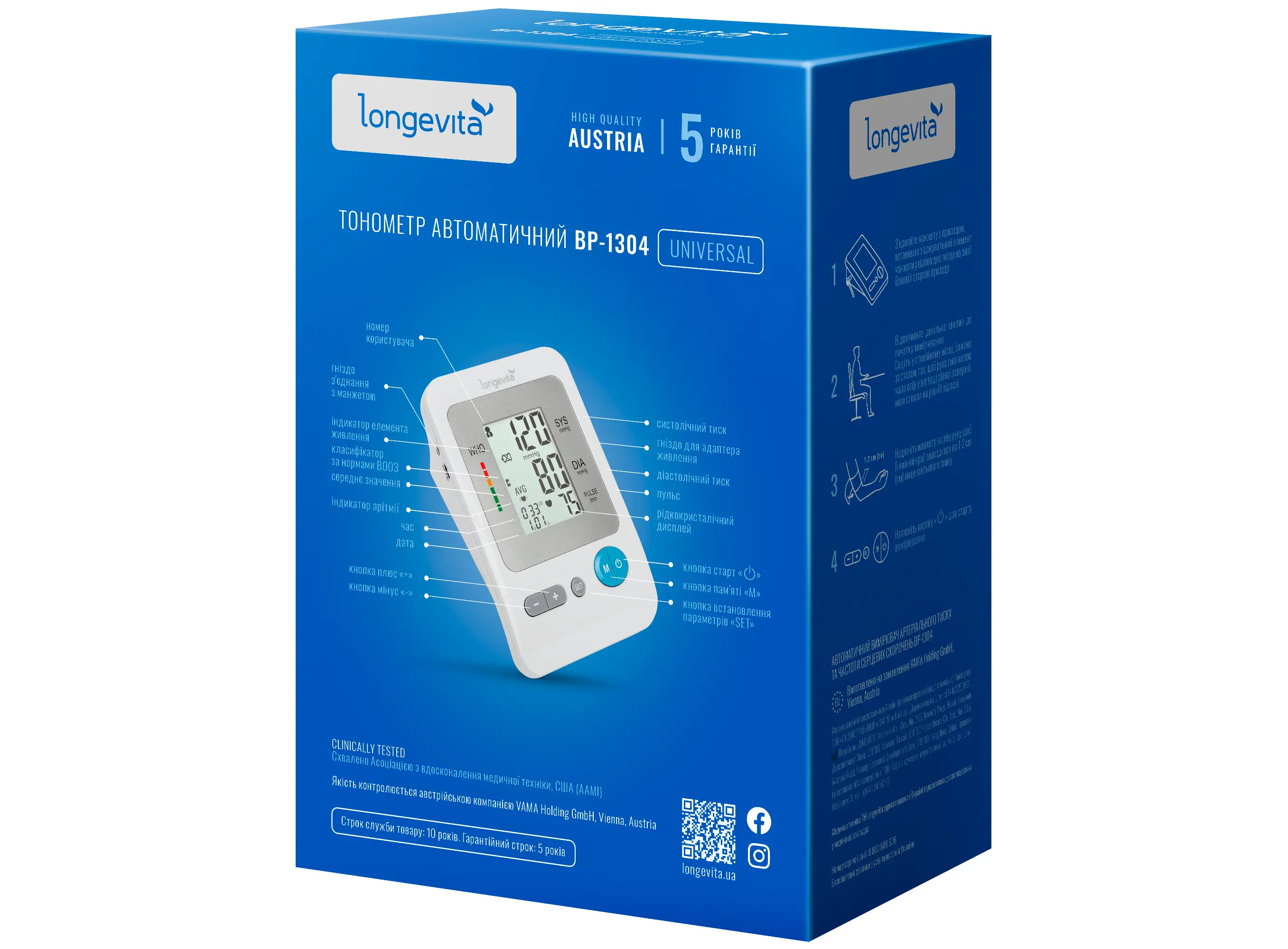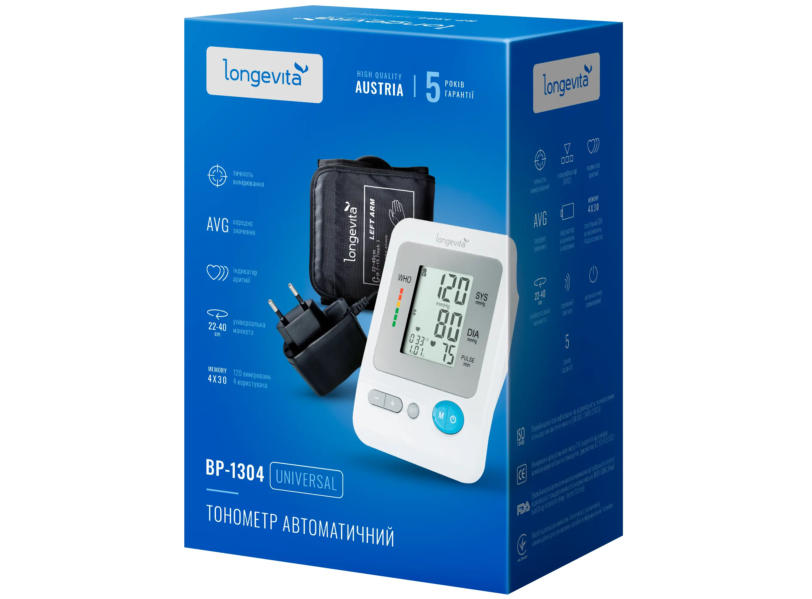 Тонометр автоматический LONGEVITA BP-1304 для измерения артериального давления на плече