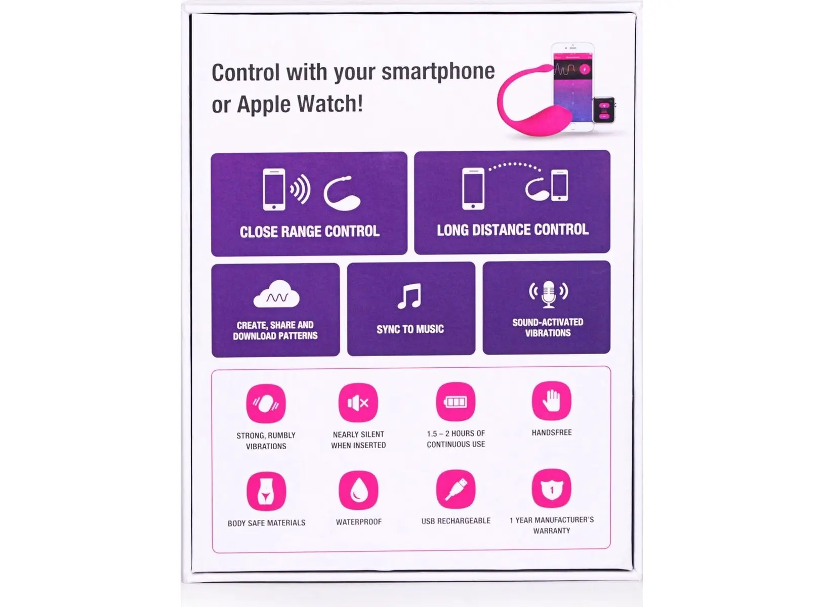 - Управляется с помощью приложения Lovense (Android и iOS);