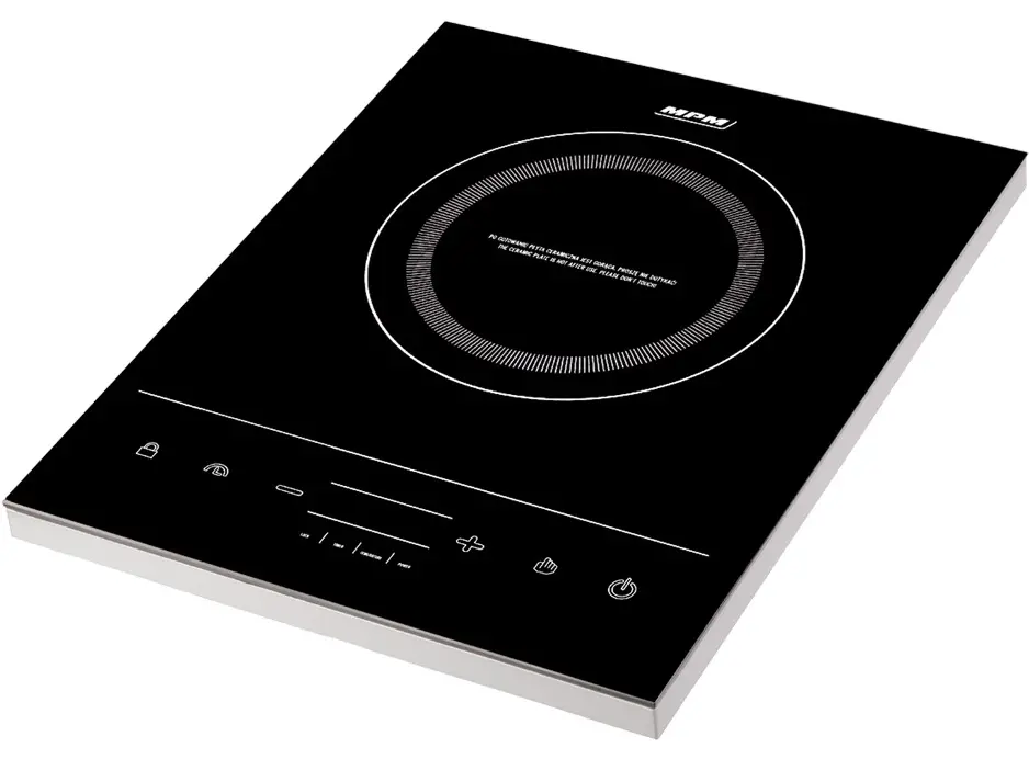 Варочная поверхность и функциональная панель изготовлены из одного листа стекла • Сенсорная панель управления с ЖК-дисплеем • Кнопочная блокировка таймер: 0-180 минут • Диапазон регулирования температуры: 60-240°C • Диапазон регулировки мощности: 200-1800