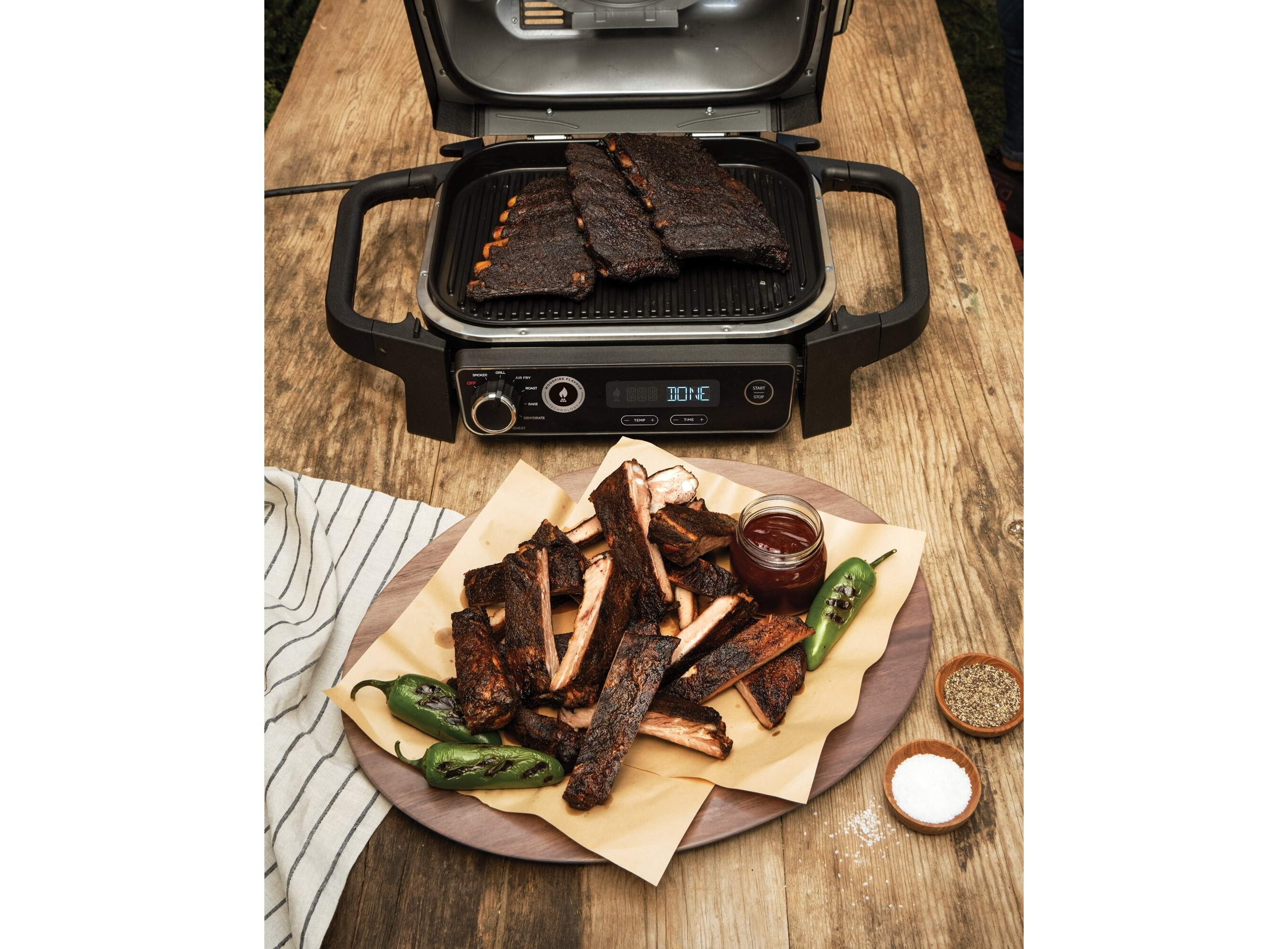 Превратите приготовление на гриле в настоящее удовольствие с электрическим грилем Ninja Woodfire OG701EU. Теперь вы можете наслаждаться аутентичным вкусом традиционного барбекю без хлопот, связанных с использованием древесного угля. Этот гриль имеет семь функций для приготовления самых разнообразных блюд, что делает его универсальным и многофункциональным инструментом для готовки.