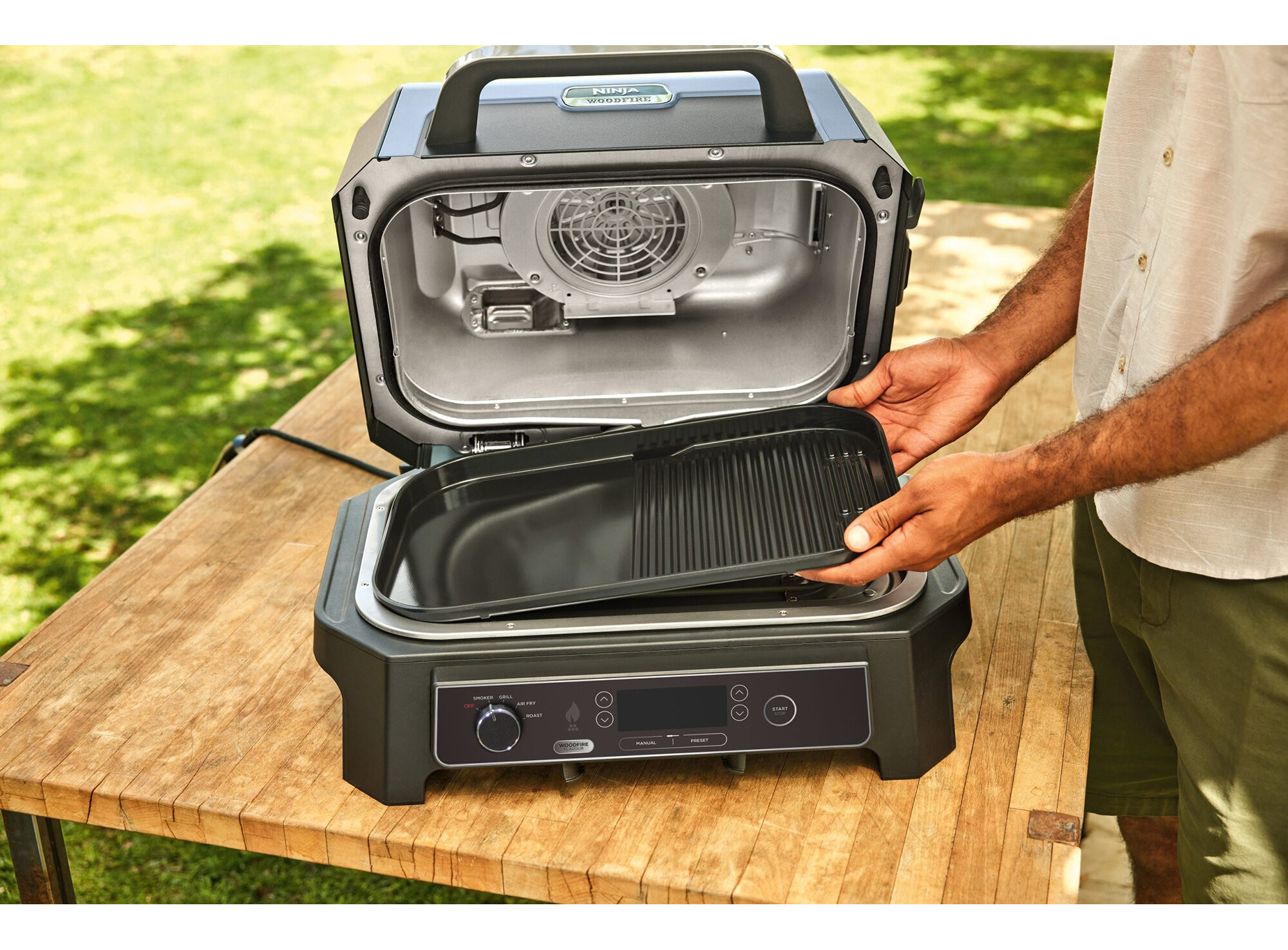 Ninja Woodfire предназначенный для использования на открытом воздухе, Он сделан из высококачественных материалов, которые могут выдержать использование в течение всего сезона. Гриль может справиться с большинство погодных условий, потому что он имеет рейтинг IPX4.