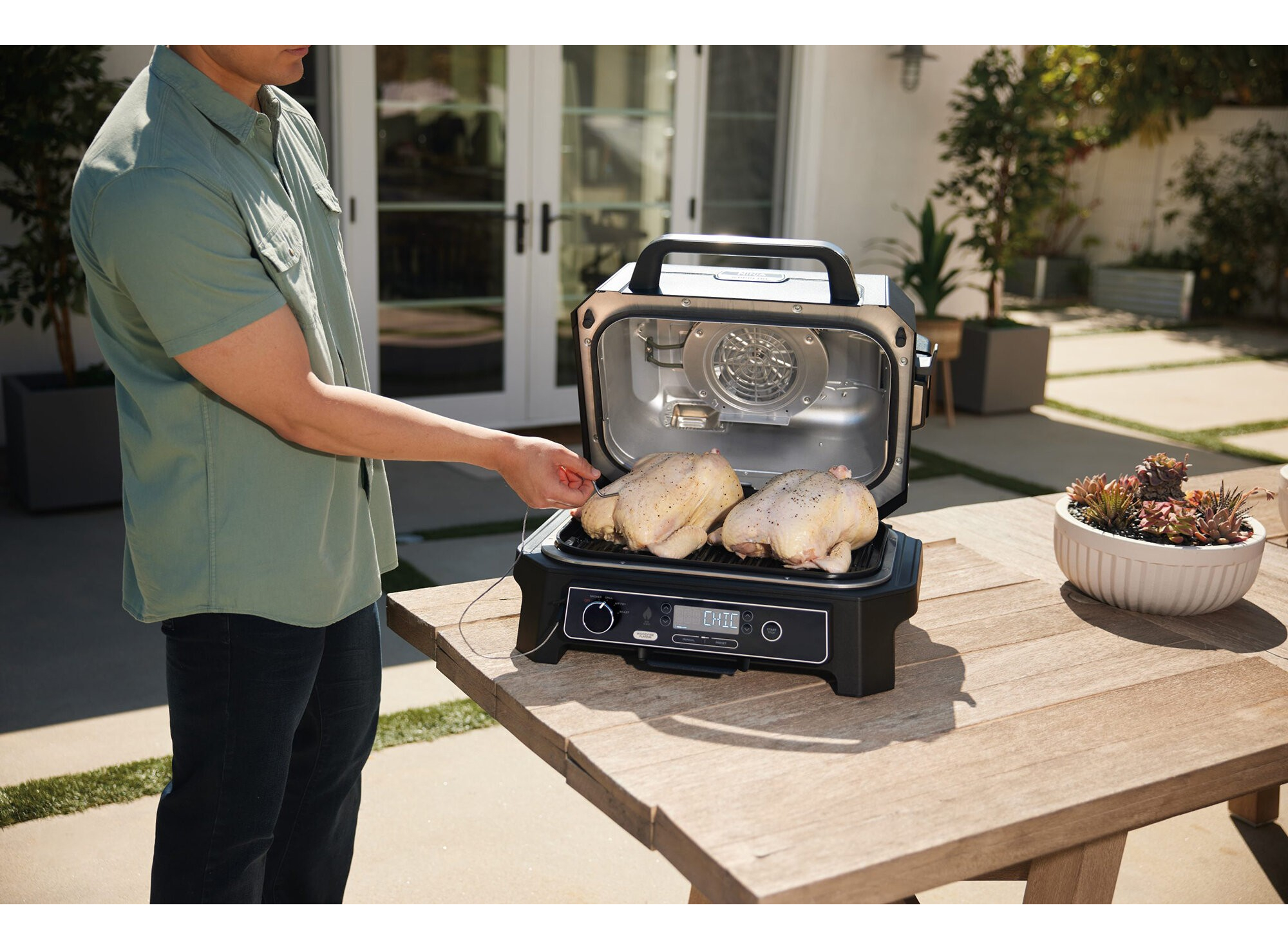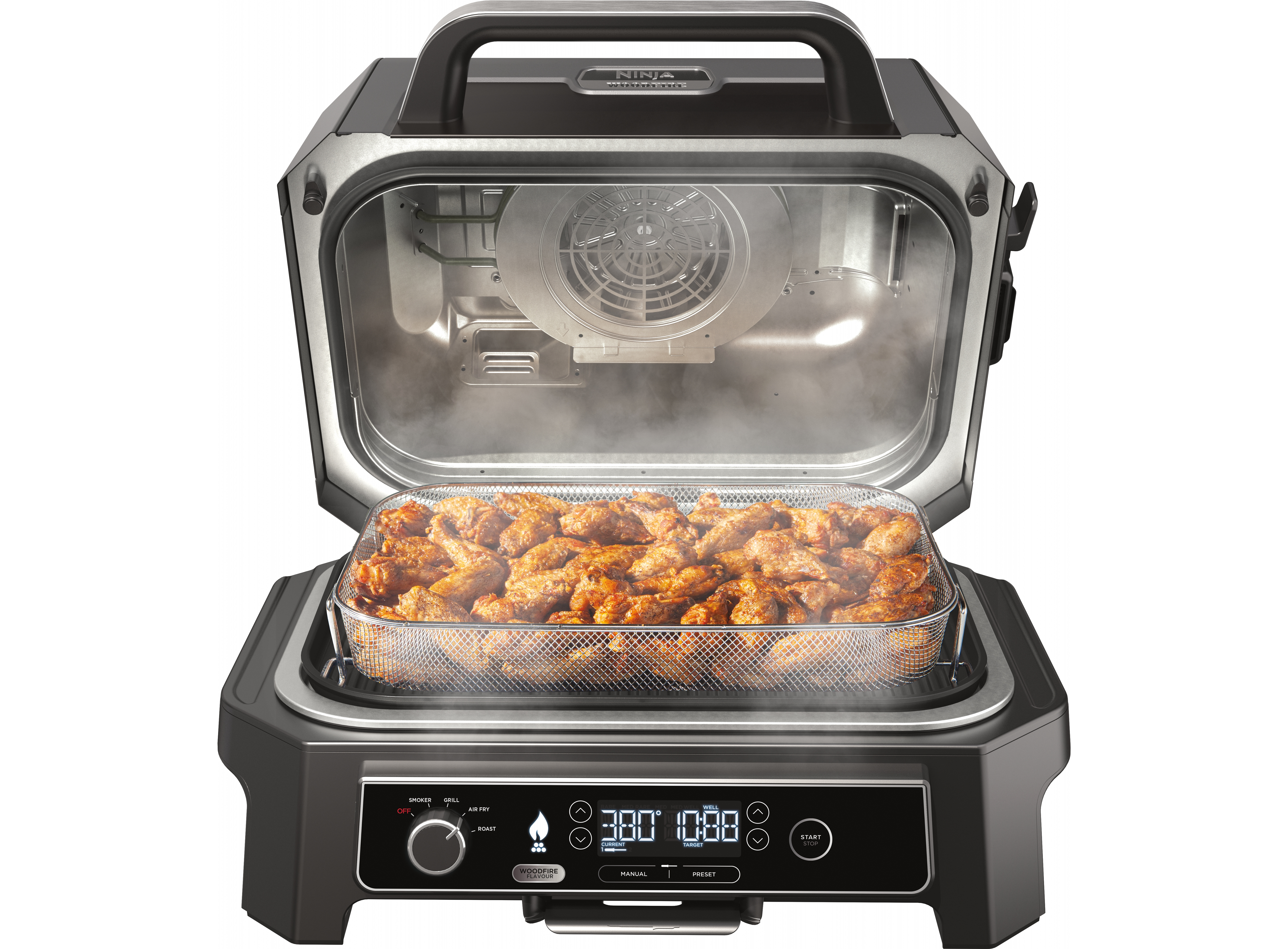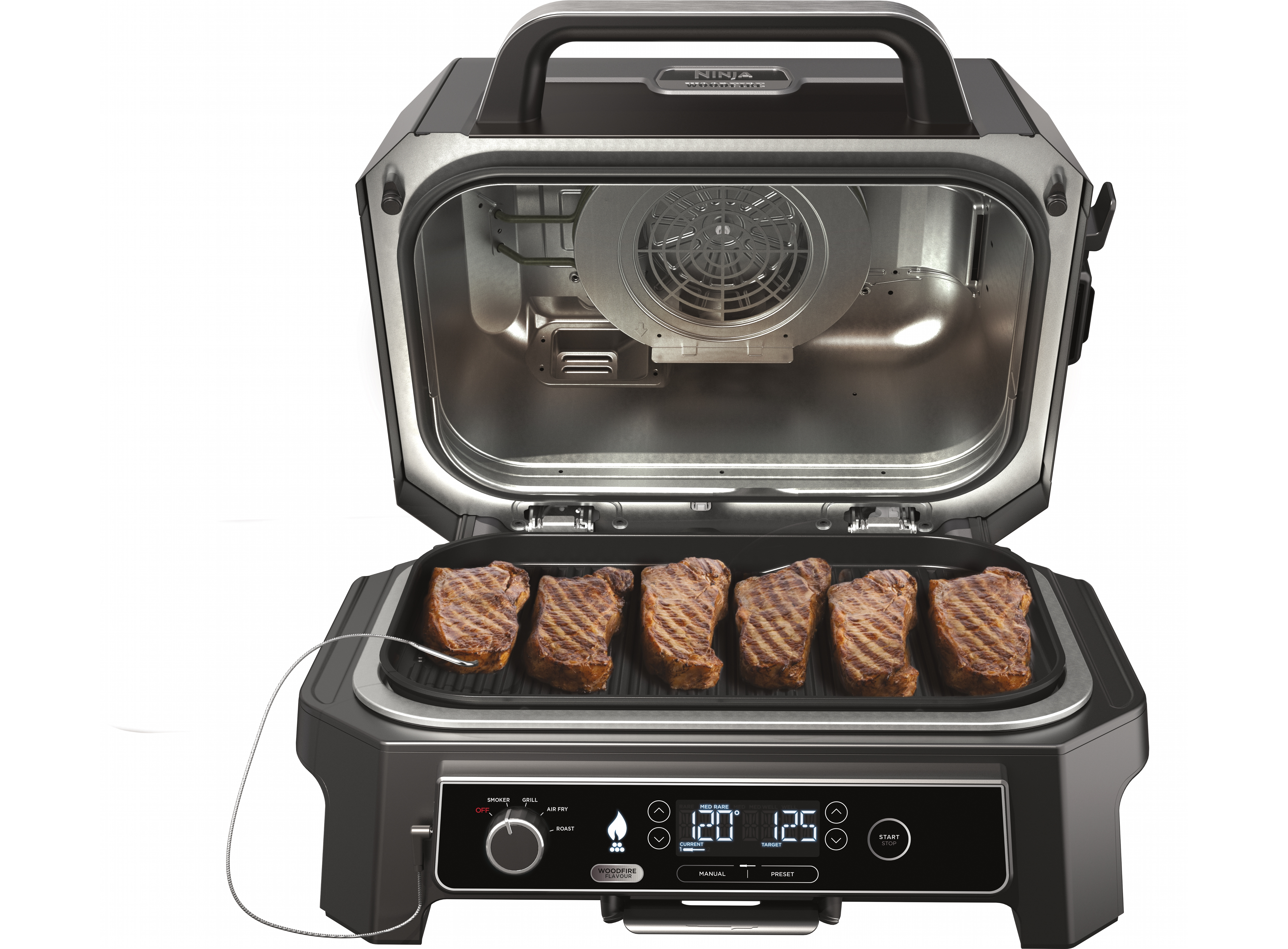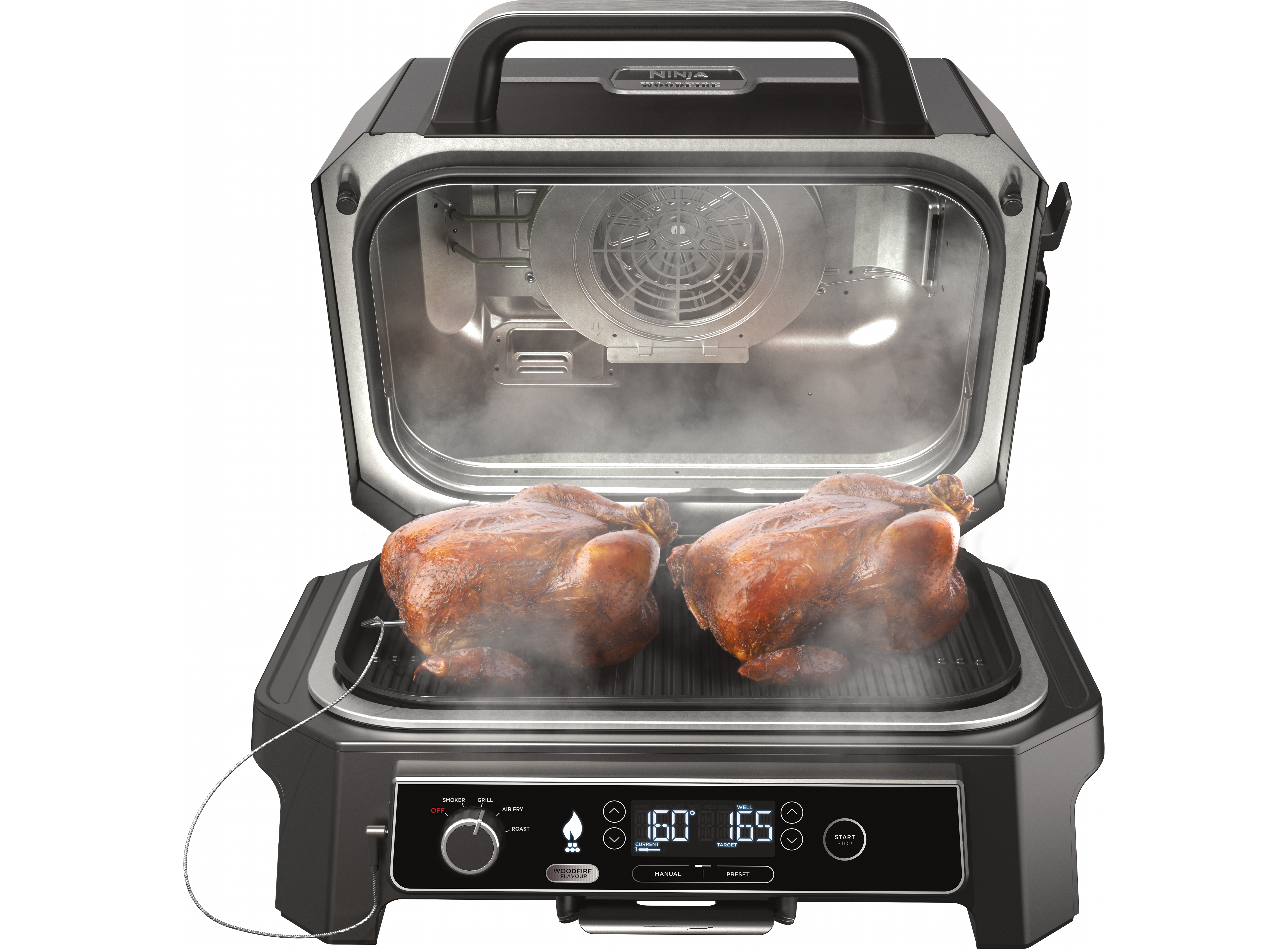 Этот гриль оснащен четырьмя отдельными функциями приготовления: grille, smoking, air frying и roasting. Благодаря этой универсальности, он становится обязательным для всех, кто стремится исследовать широкий спектр кулинарных приключений.