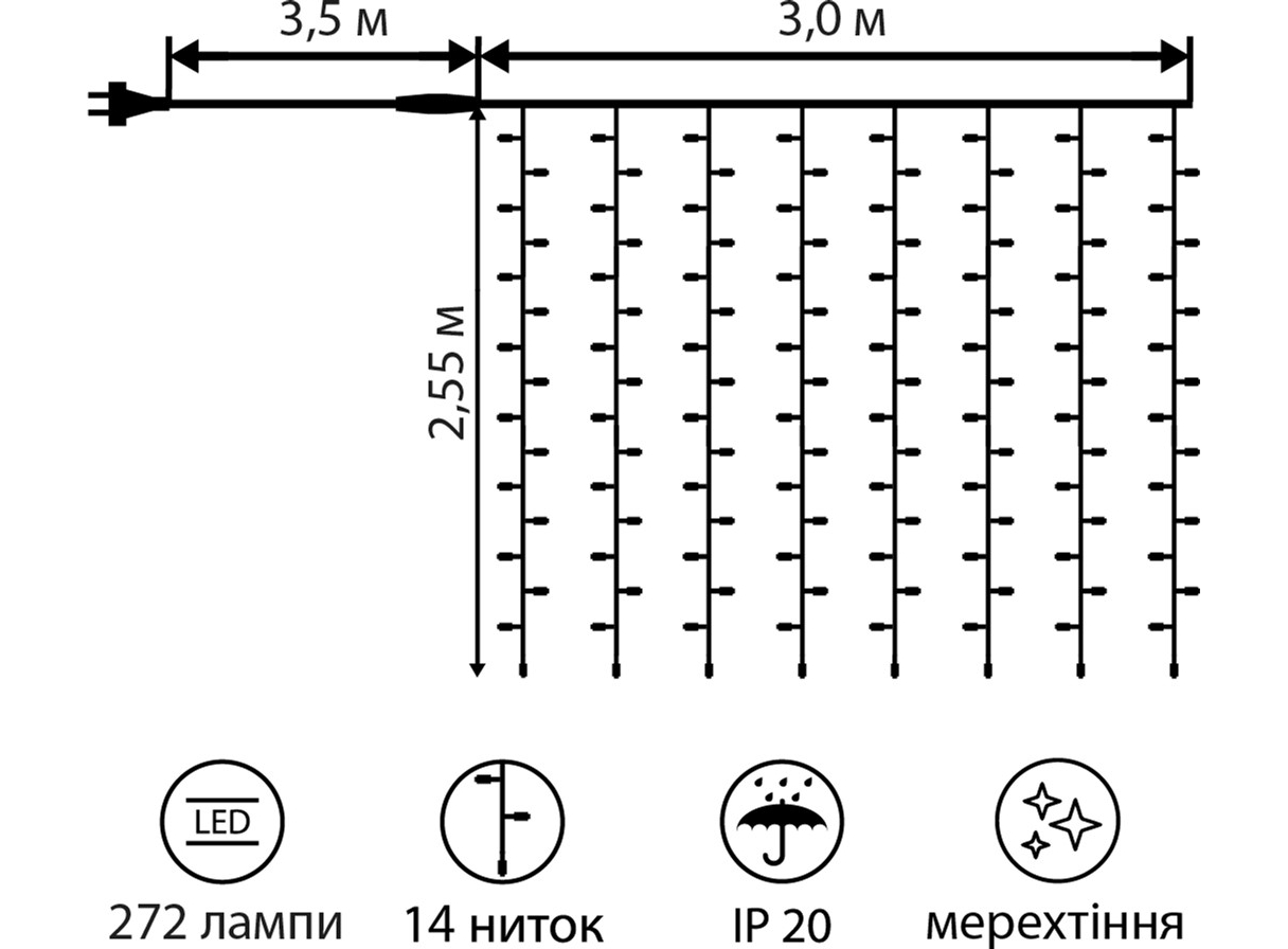 Светодиодная гирлянда Новогодько 272 LED, Синяя, 3х2.6 м, мерцание (973774) (4820253262873)