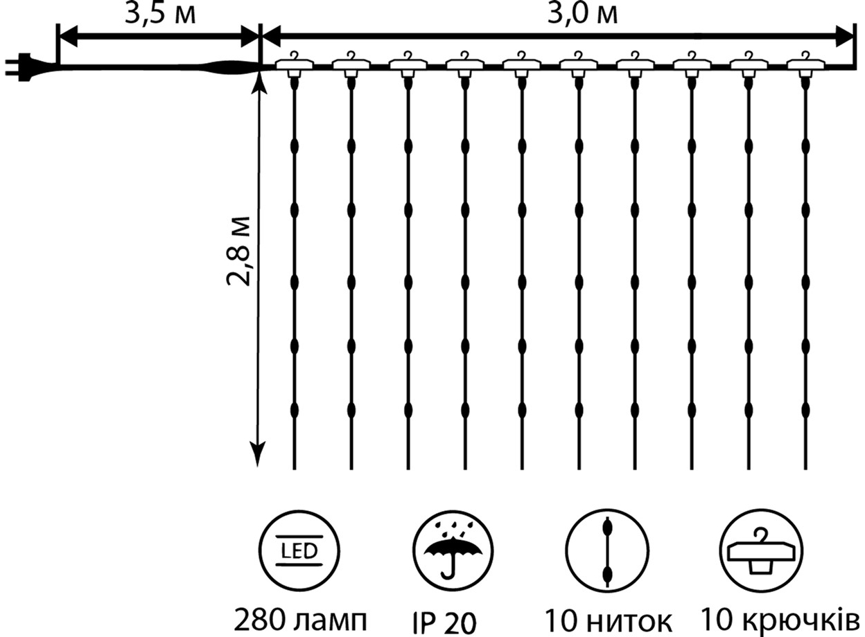 Светодиодная гирлянда Новогодько 280 LED, Многоцветная, 3х2.8 м, статическое свечение (974224) (4820253267892)