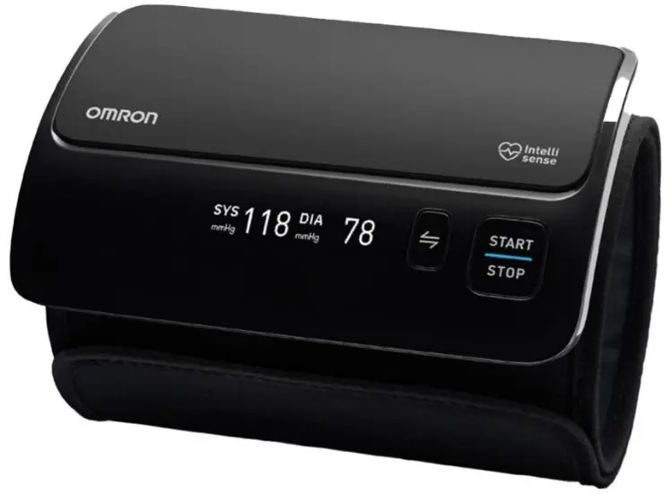 Благодаря мобильному приложению OMRON Connect, EVOLV может синхронизироваться с вашим смартфоном, Bluetooth. Уникальная модель с монитором, встроенным прямо на манжету.