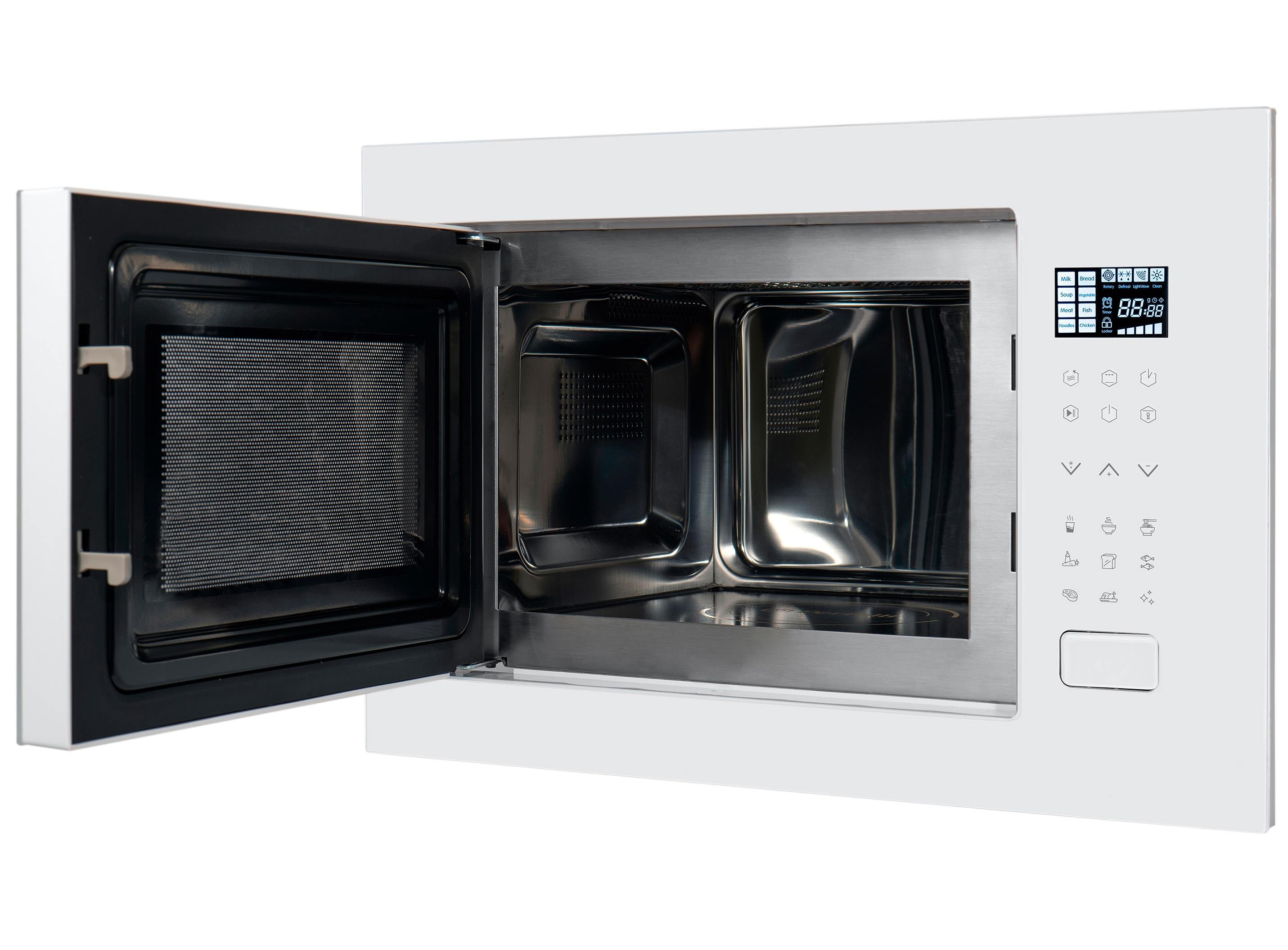 Система равномерного распределения микроволн - без поворотного стола 3D-нагрев • Защита от детей • Звуковой сигнал • Отложенный старт • Часы • Гриль • С биокерамическим поддоном • 2 режима Гриля • 2 режима Комби