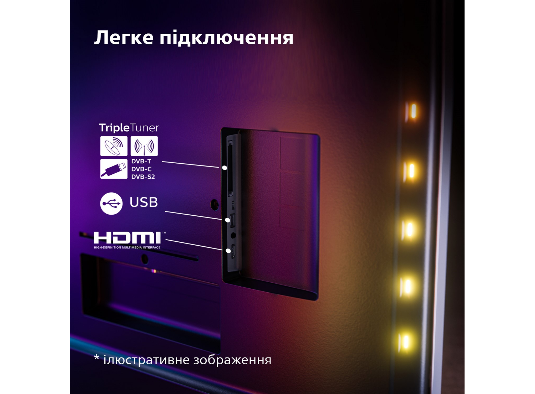 Фоновая подсветка Ambilight • EasyLink 2.0(HDMI-CEC) • eARC • Поддержка HDR10/HDR10+ Compatible/HLG • Поддержка ALLM, VRR