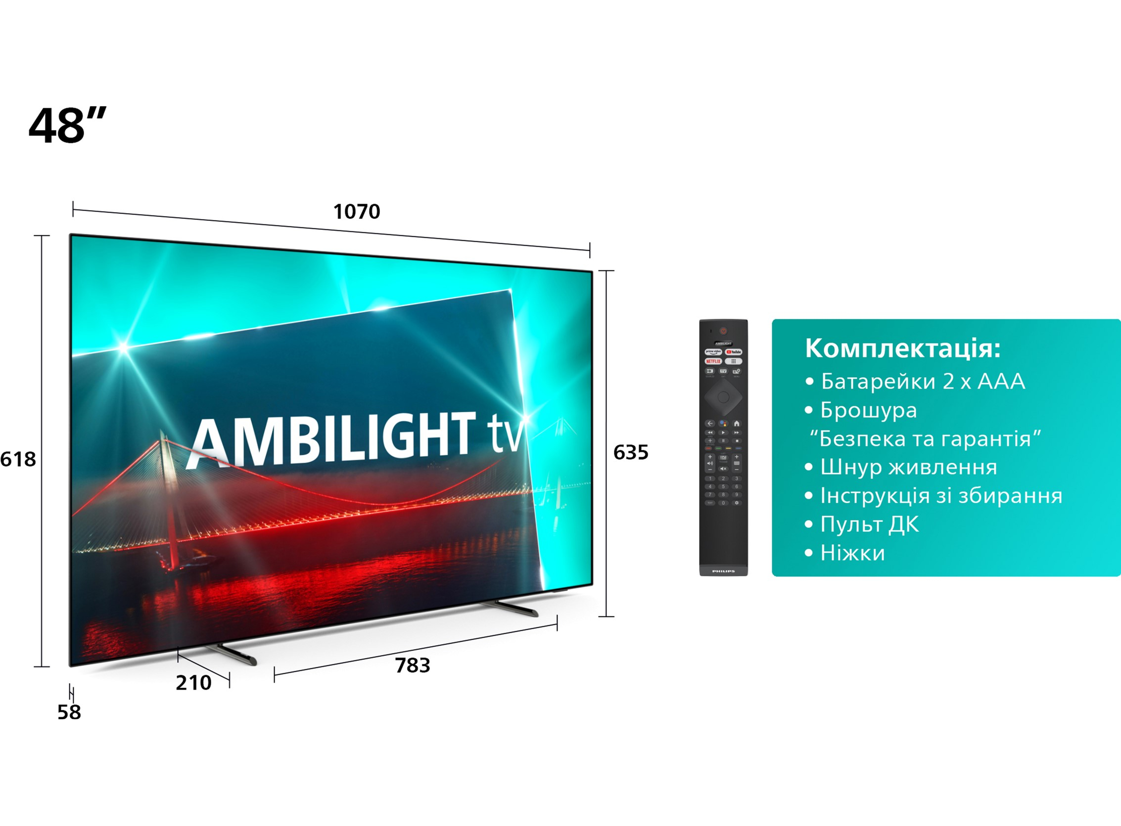 Фоновая подсветка Ambilight • EasyLink 2.0 (HDMI-CEC) • eARC • Поддержка Dolby Vision/Atmos • Поддержка ALLM, VRR