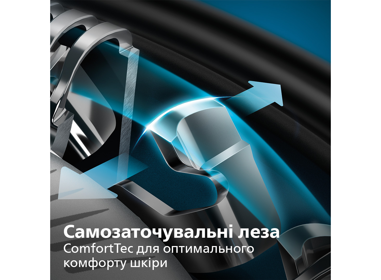 Водонепронецаемый корпус • Индикация степени заряда • Тип аккумулятора: литий-ионный • Быстрая зарядка: 5 мин • Подвижные головки 360 D • Лезвия ComfortTech • Эргономичная ручка с резиновым покрытием • Интуитивный светодиодный дисплей с пиктограммами