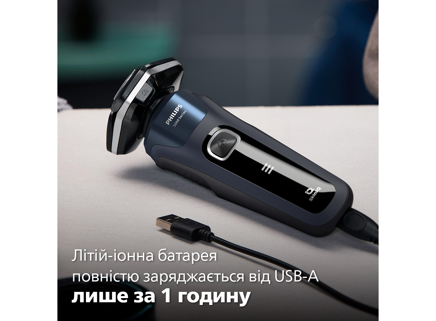 Фирменные технологии SkinIQ • Высокая эффективность при каждом проходе • Разработано для точности и эффективной срезки • Гибкие головки повторяют контуры лица • Настраивается в соответствии с вашей бороды для легкого бритья • Зарядка в течение 1 часа и 5-