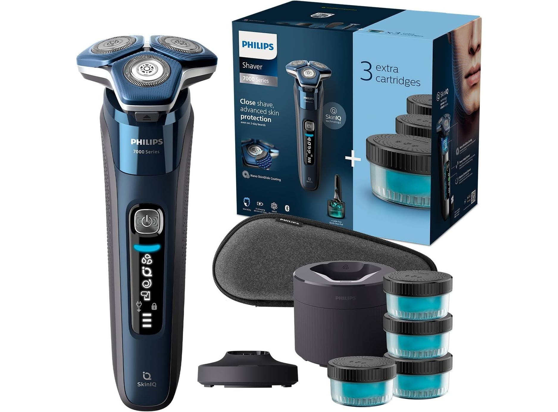 Бритва • Подставка-зарядка • Станция самоочистки Quick Clean Pod • Дорожный футляр