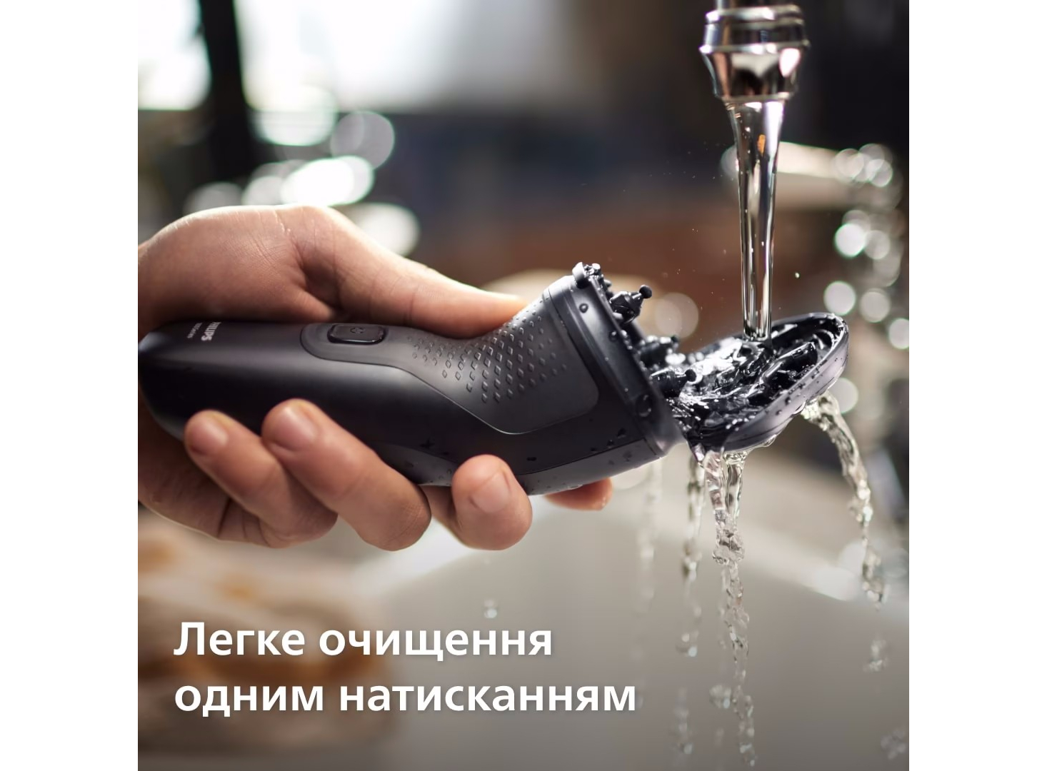 Головки 4D Flex: Плавающие головки изгибаются в четырех направлениях, чтобы поддерживать равномерный контакт с кожей • Система лезвий PowerCut, 27 сами затачивающихся лезвий, 55.000 срезок в минуту • Простота в использовании • Индикатор зарядки • Легкая о
