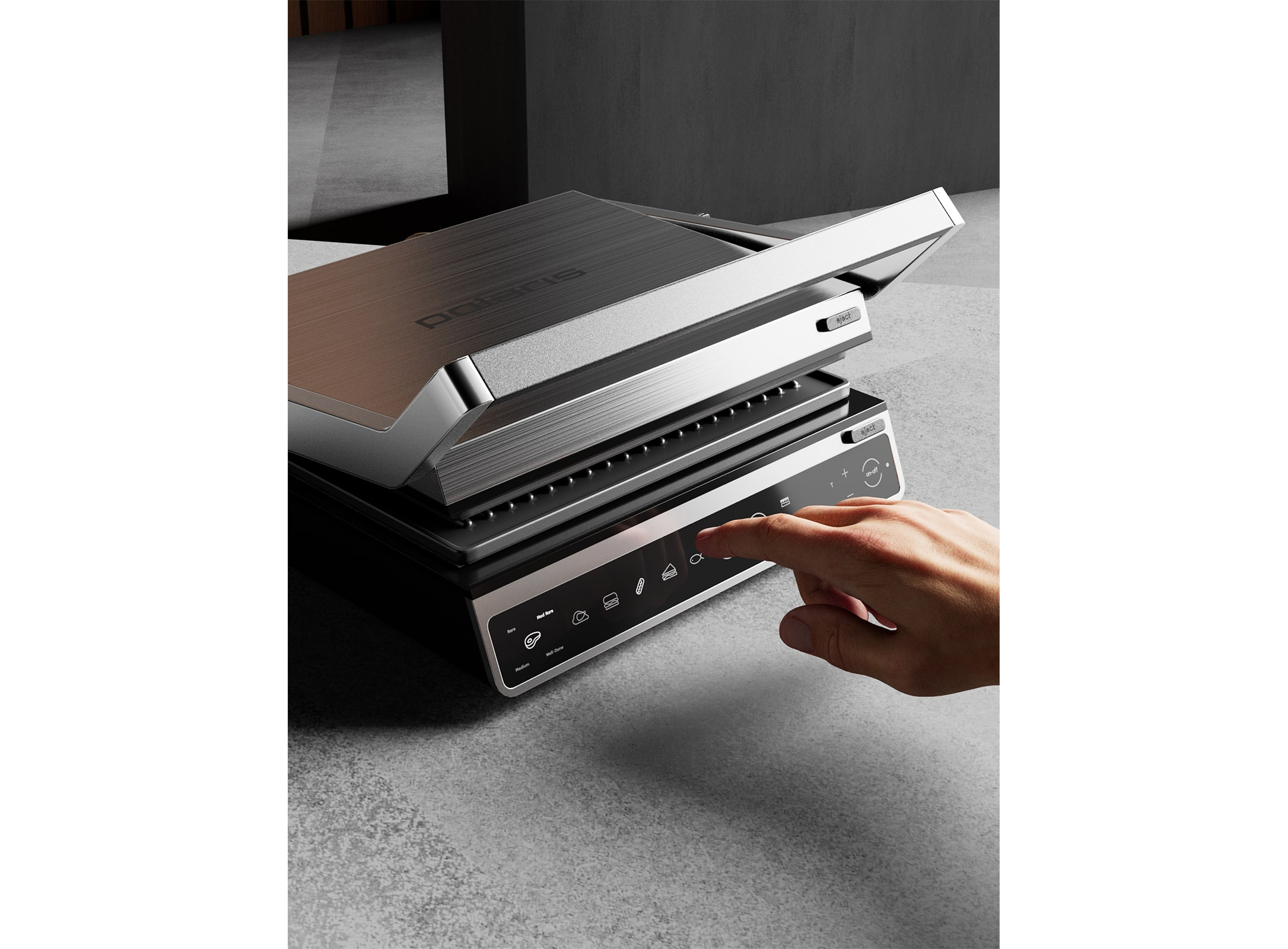 Звуковая индикация готовности световая индикация включения световая индикация достижение заданного нагрева сенсорный датчик толщины продукта