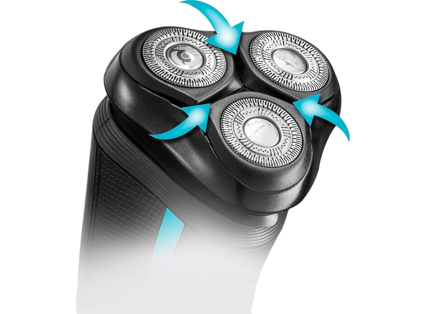 100% водонепроницаемость - влажное бритье, легкая очистка • Разнонаправленные бритвенные головки и двойные лезвия • Гибкие лезвия и вращающаяся головка