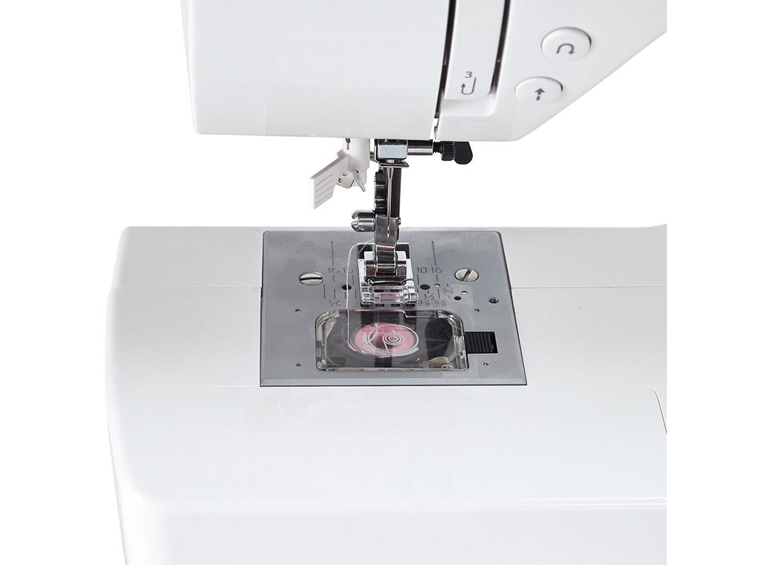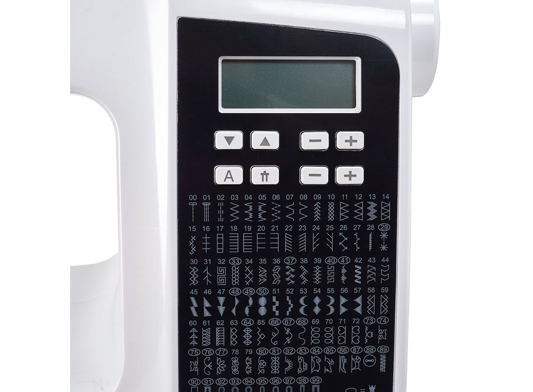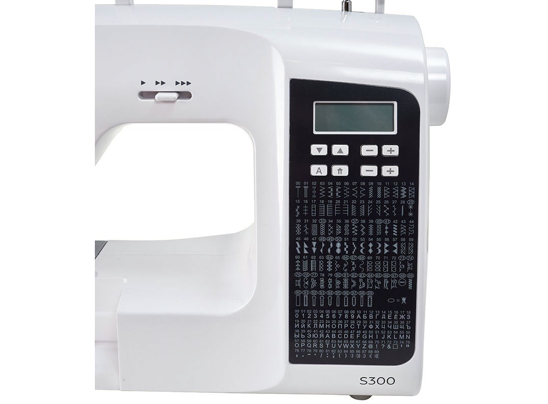 LED дисплей • Электронная регулировка параметров строчки • Функция шитья без педали (кнопка • Старт/Стоп) • Регулятор скорости шитья (на панели машины) • Функция штопки/вышивки (отключение транспортера ткани) • Автоматическое отключение игловодителя при н