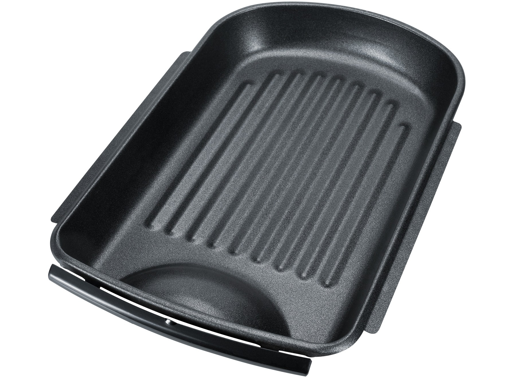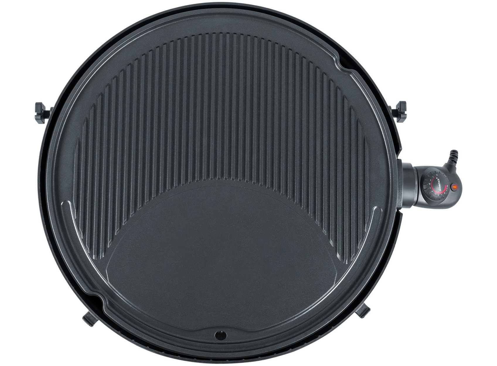 XXL-гриль-пластина диаметром 48 см • Плавная регулировка температуры для оптимальных результатов приготовления на гриле • Крышка с шарниром, также съемная • Низкое содержание жира: жидкость для жарки стекает в поддон для капель • Высокая температура гриля