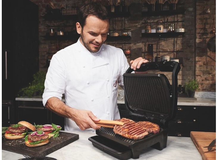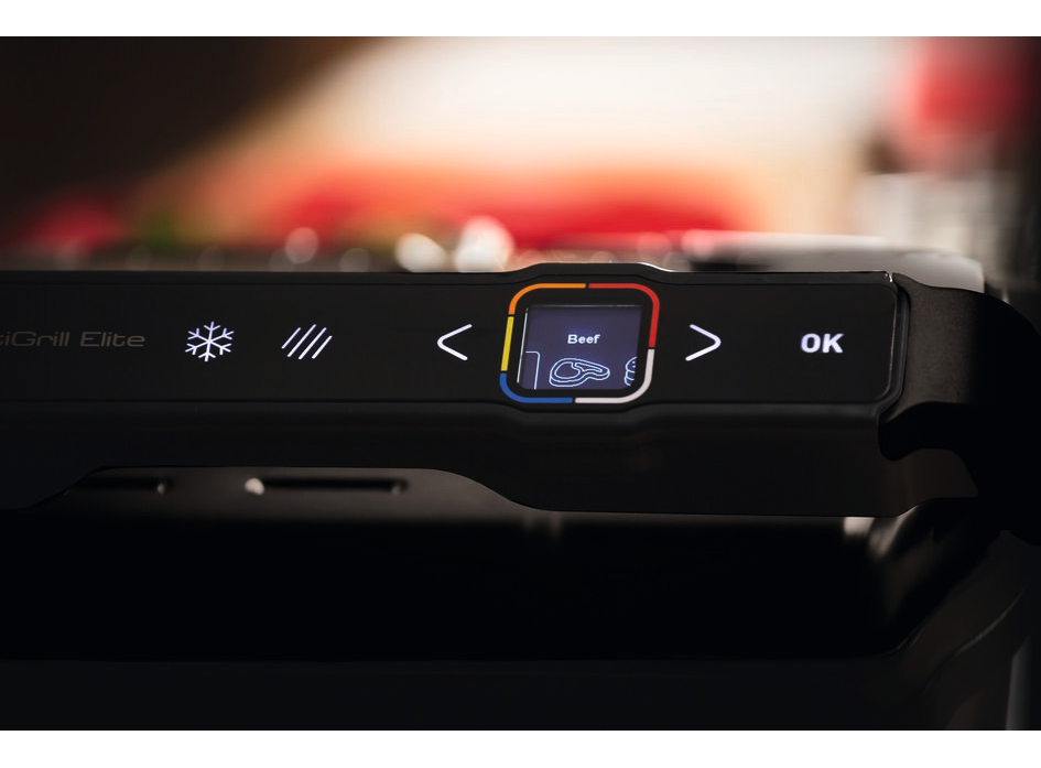 600 см² рабочей поверхности • Съёмные толстые пластины с антипригарной поверхностью из литого алюминия • Угол наклона панели - 7° (для стекания жира и лёгкой очистки) • Интеллектуальная технология OptiGrill • Индикатор степени прожарки с touchpad • Цифров