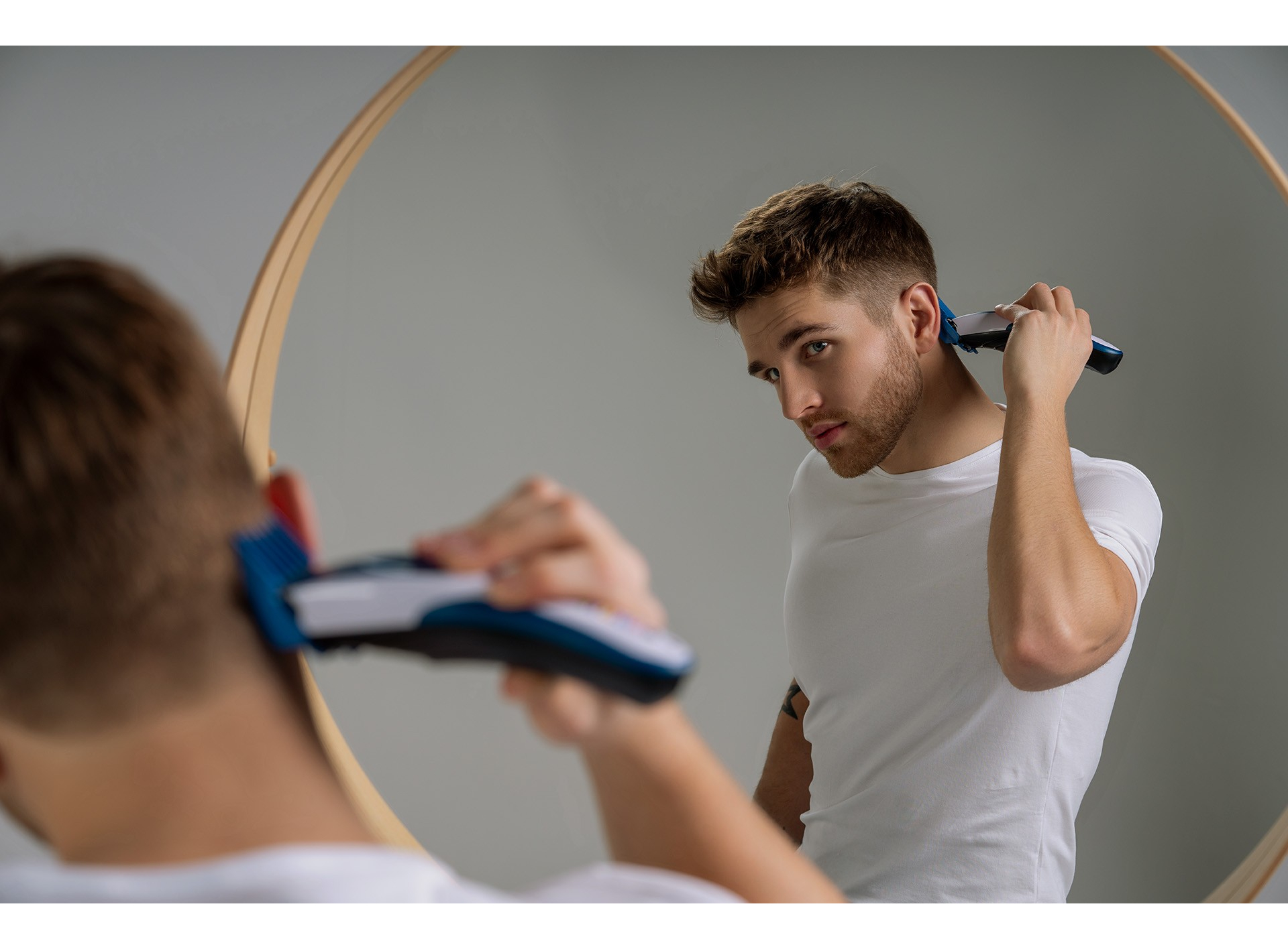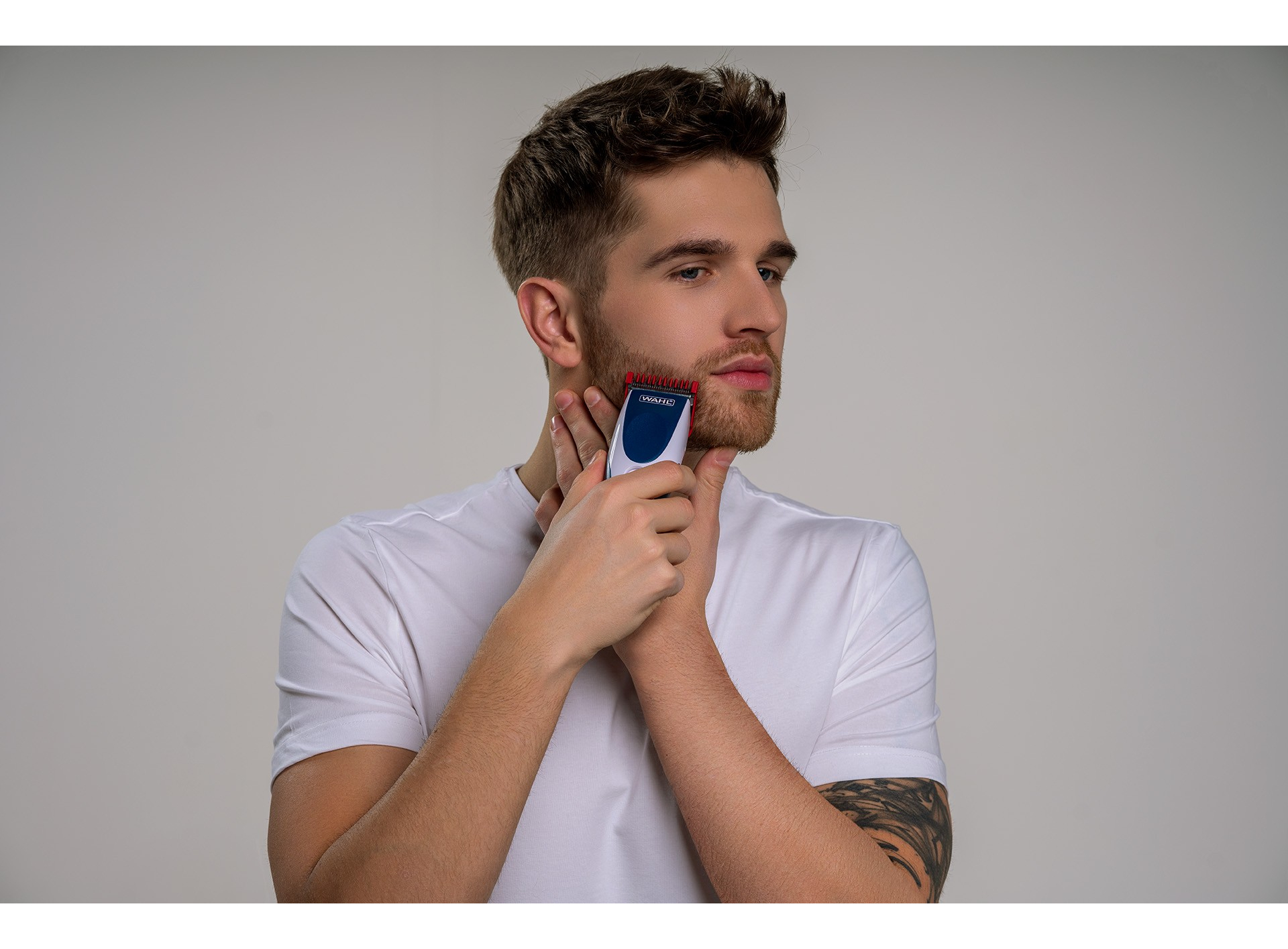 Мини-триммер 10 разноцветных насадок (1.5, 3, 4.5, 6, 10, 13, 16, 19, 22, 25 мм) • Насадки для левого и правого уха • Защита лезвия • Мешочек • Расческа • Ножницы • Зарядное устройство • Смазка для лезвий • Щетка для чистки
