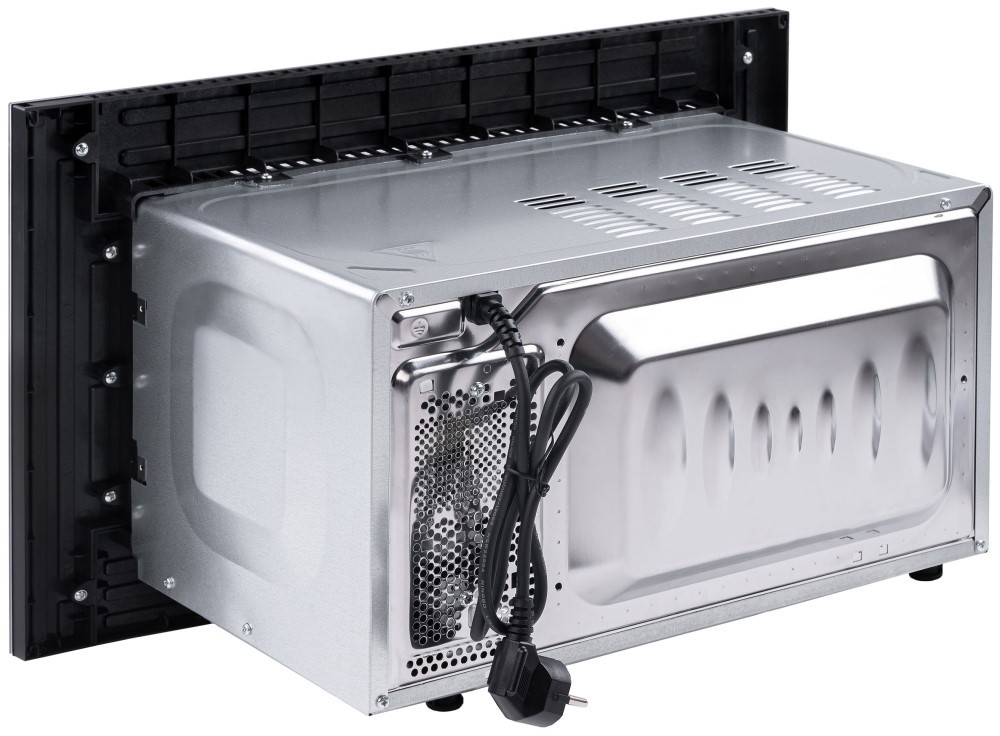 Система равномерного распределения микроволн - без поворотного стола • Фронтальная панель - черное закаленное стекло и нержавеющая сталь • Подсветка камеры • Звуковой сигнал