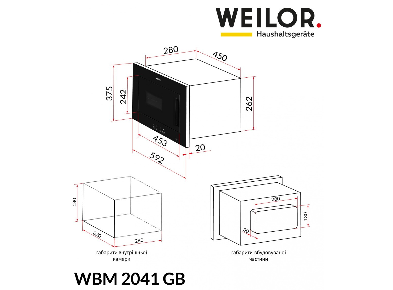 Встраиваемая микроволновая печь Weilor WBM 2041 GB